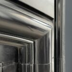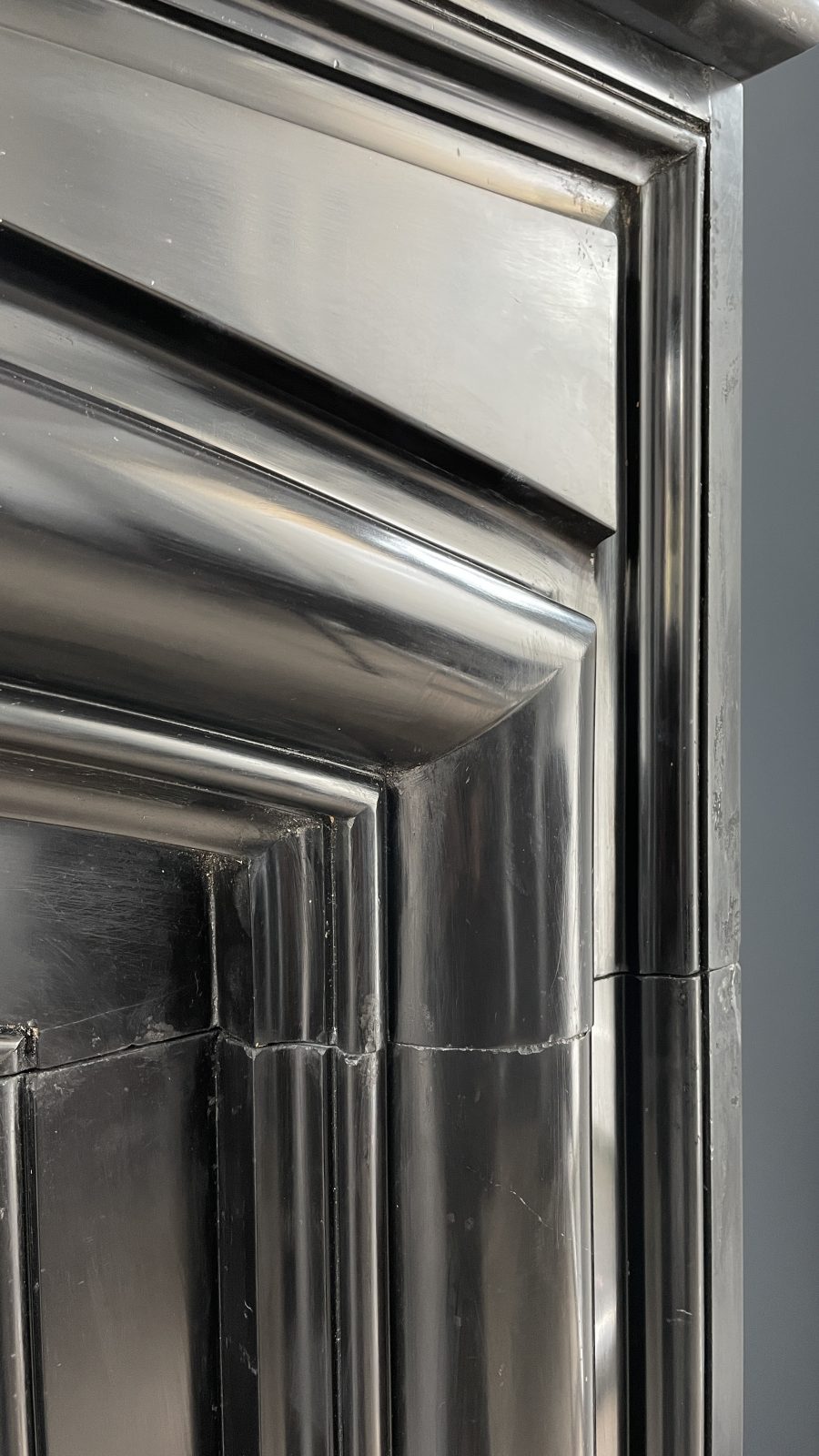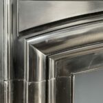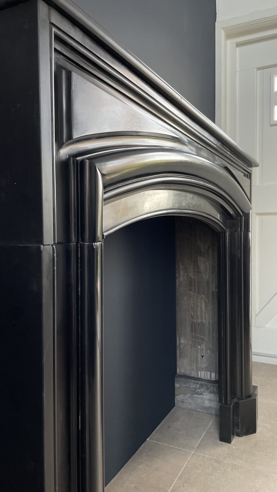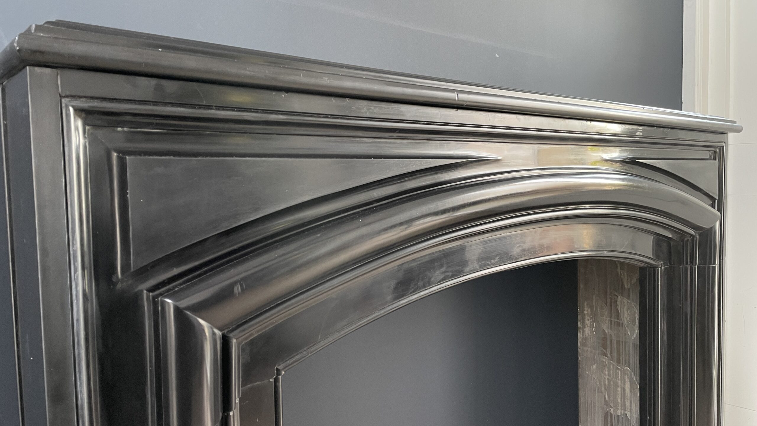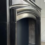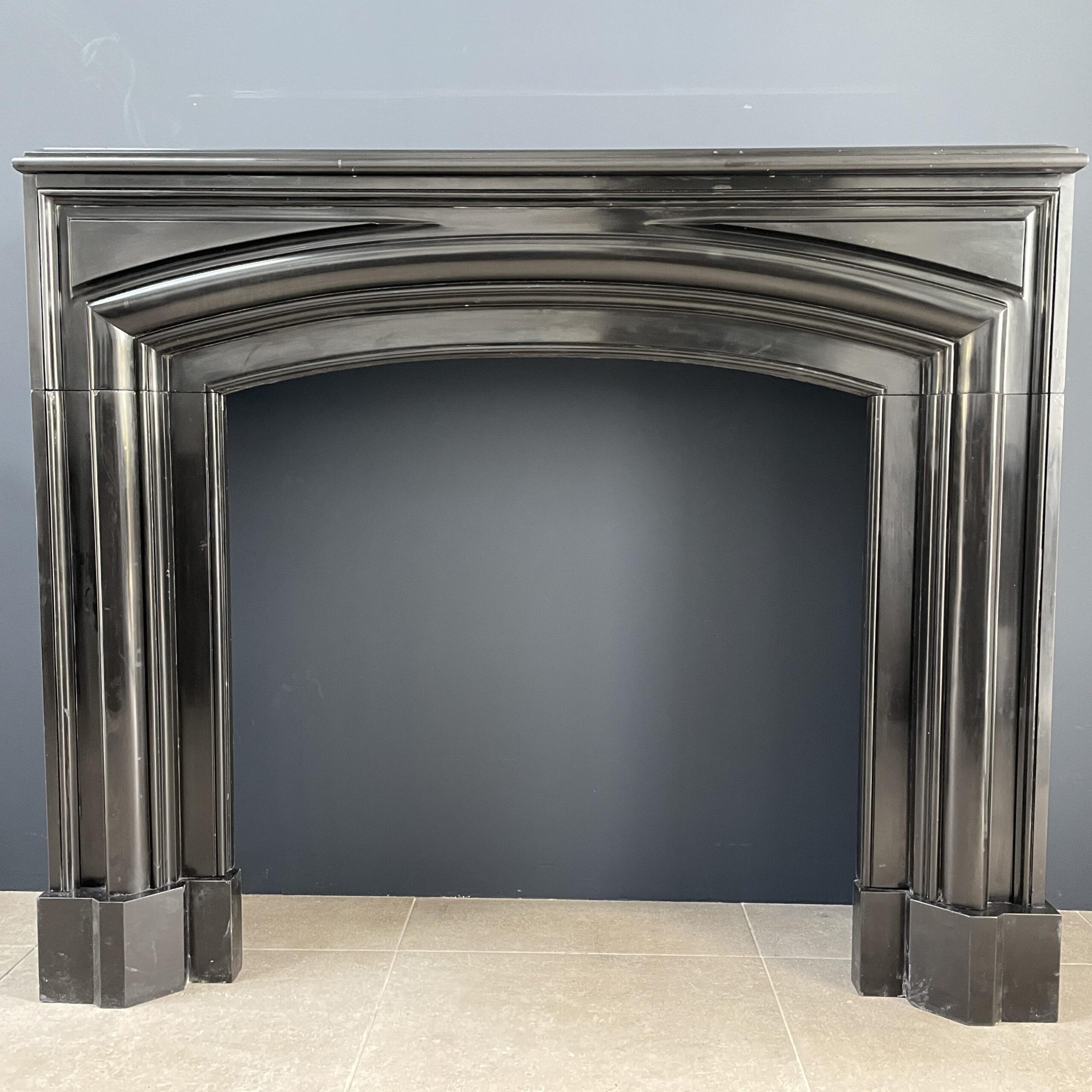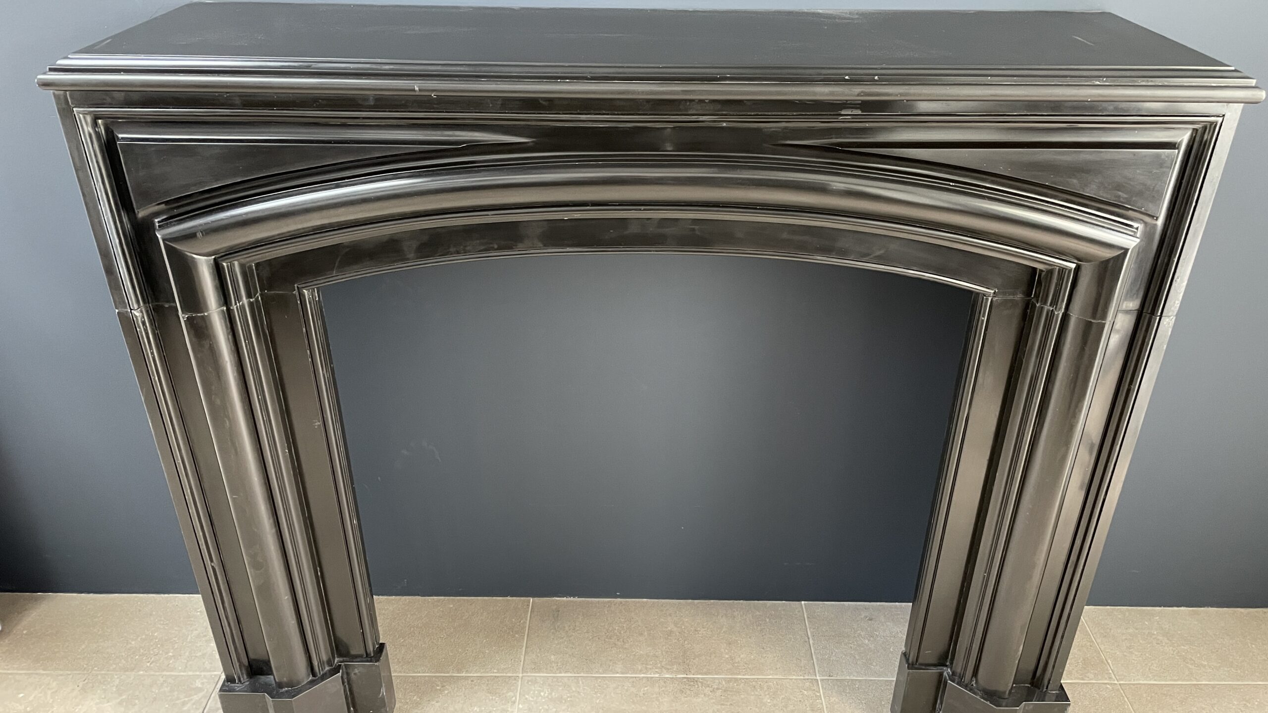 A beautiful black antique Noir de Mazy bollection fireplace. The beautiful black antique fireplace is characterized by the continuous round frame. The fireplace is made of black gold marble Noir de Mazy from Belgium. The round molding and sleek profile carved out of the front give this antique fireplace a rich look that will come into its own in both modern and classic interiors. The sharply cut profiles in the front of the fireplace are a good reflection of the quality of this antique fireplace.