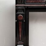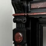 Dating from the end of the 19th century, made of high quality Noir de Mazy marble in combination with Rouge Griotte marble. This is a fireplace in the typical neoclassical style where excess certainly does not harm.