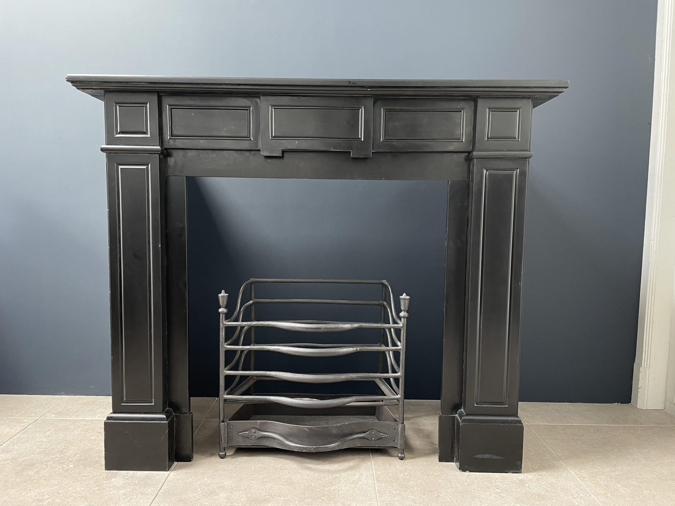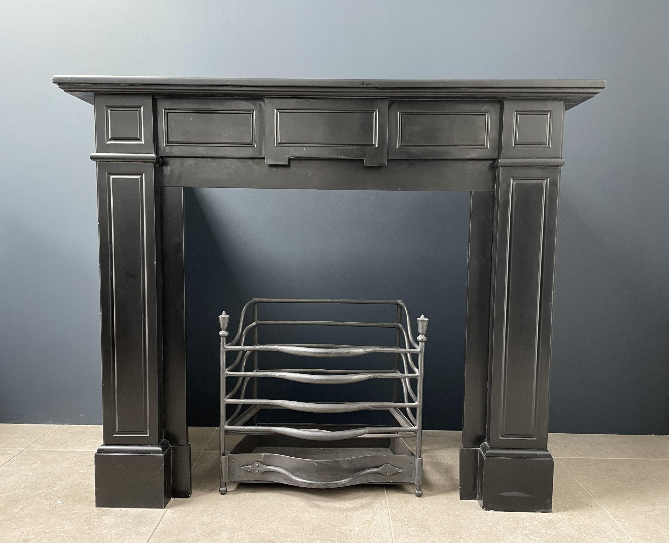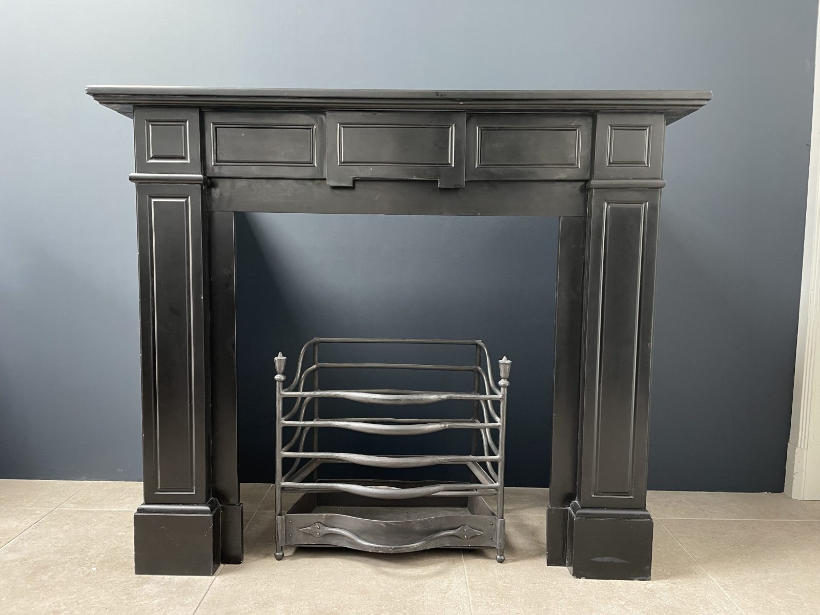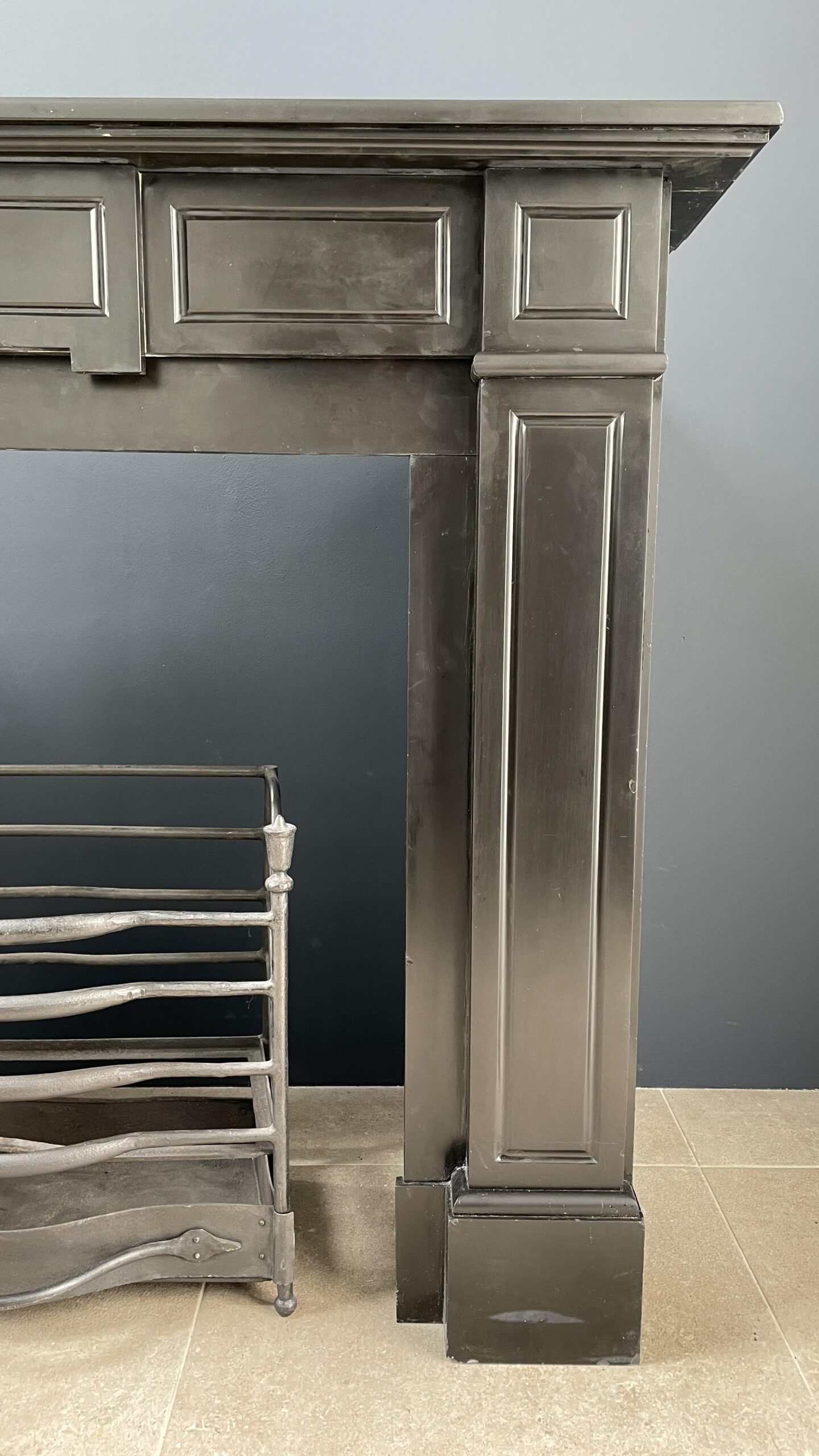 Black marble mantelpiece. Dutch model circular fireplace with a profile in the front. The top is double. This chimney is good to use to make a working fireplace. With this robust black marble mantelpiece you can give your interior a stately look in an instant. Thanks to the style and dimensions, this piece fits into any interior.