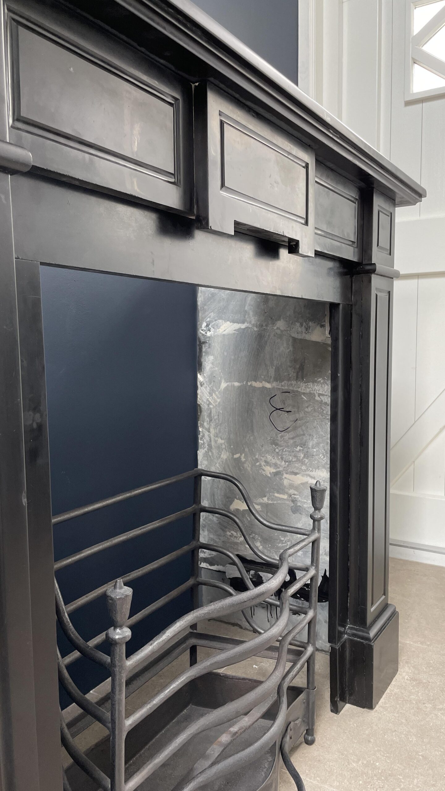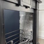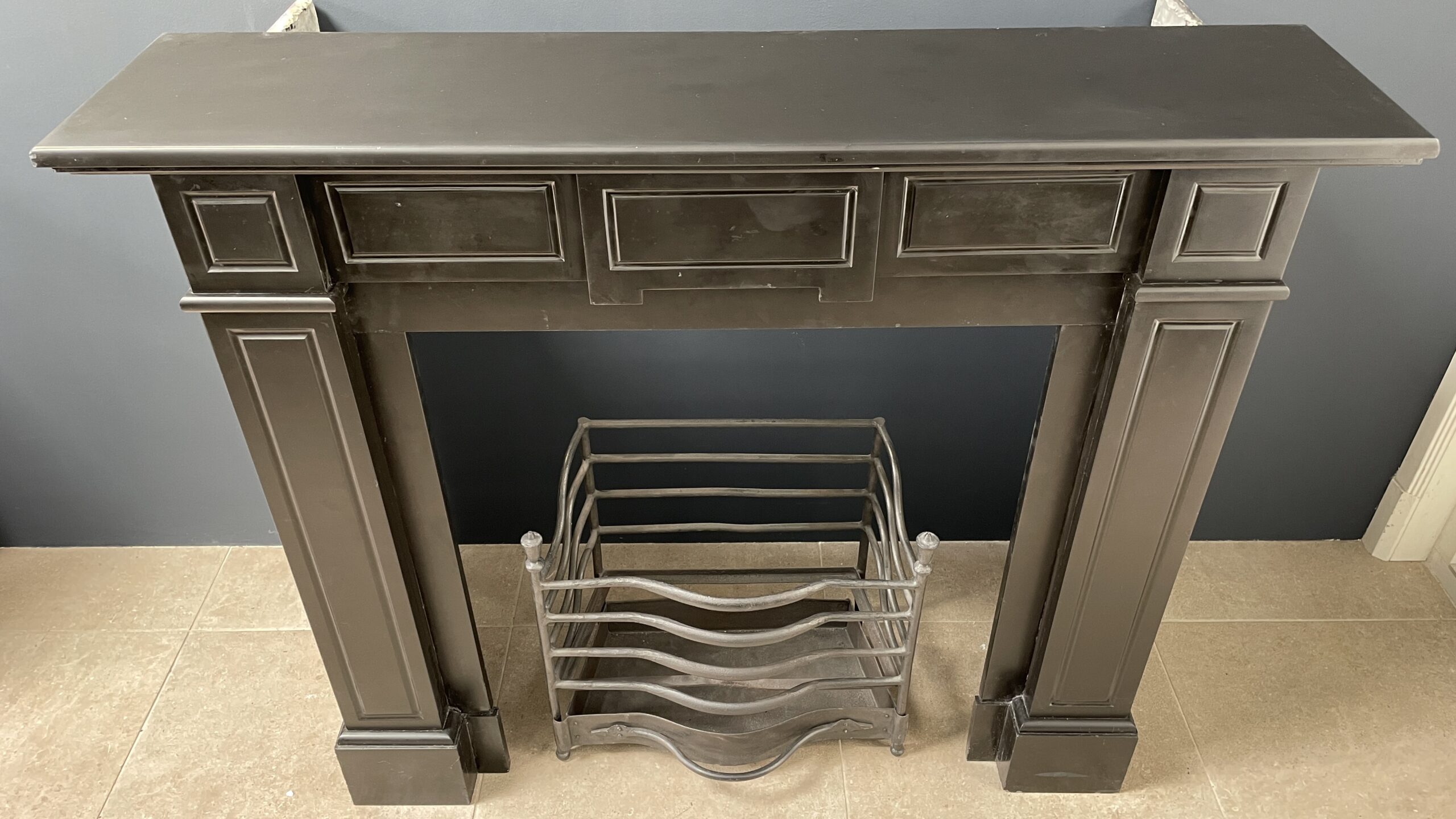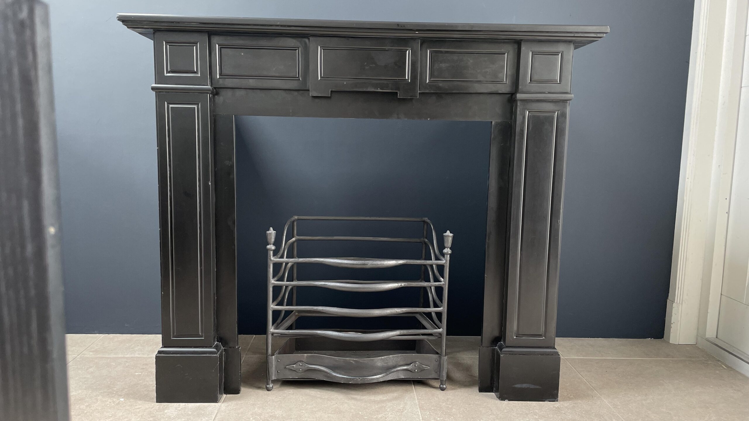 Black marble mantelpiece. Dutch model circular fireplace with a profile in the front. The top is double. This chimney is good to use to make a working fireplace. With this robust black marble mantelpiece you can give your interior a stately look in an instant. Thanks to the style and dimensions, this piece fits into any interior.