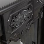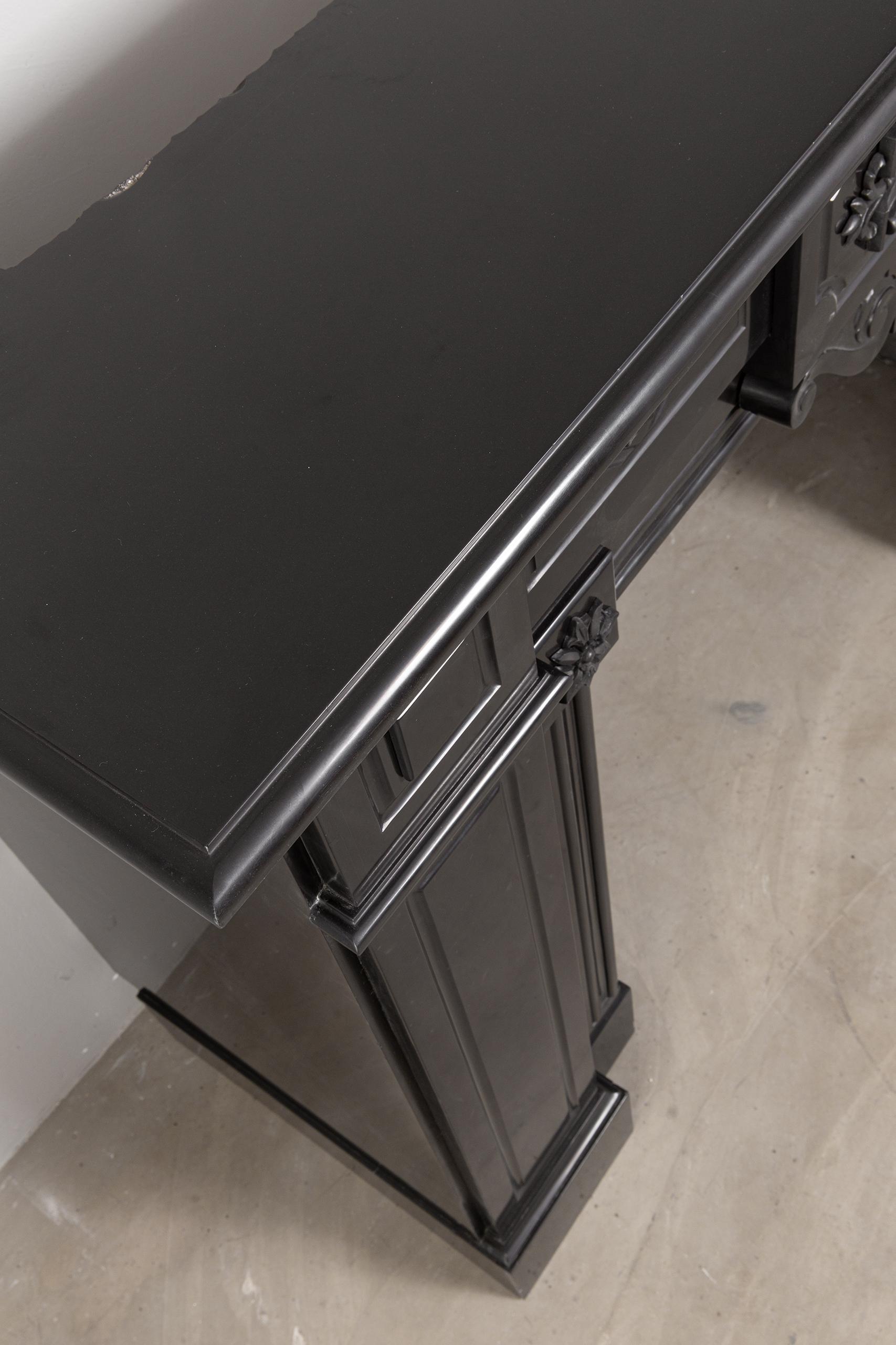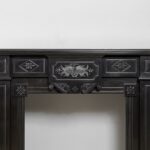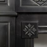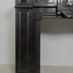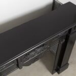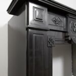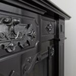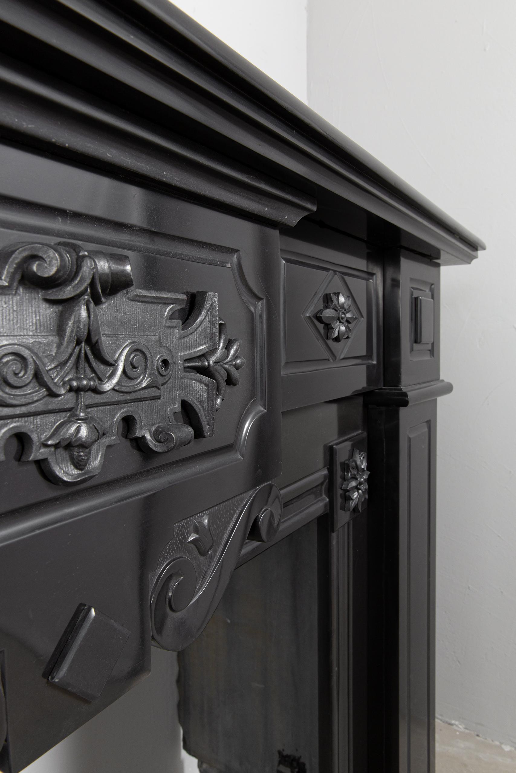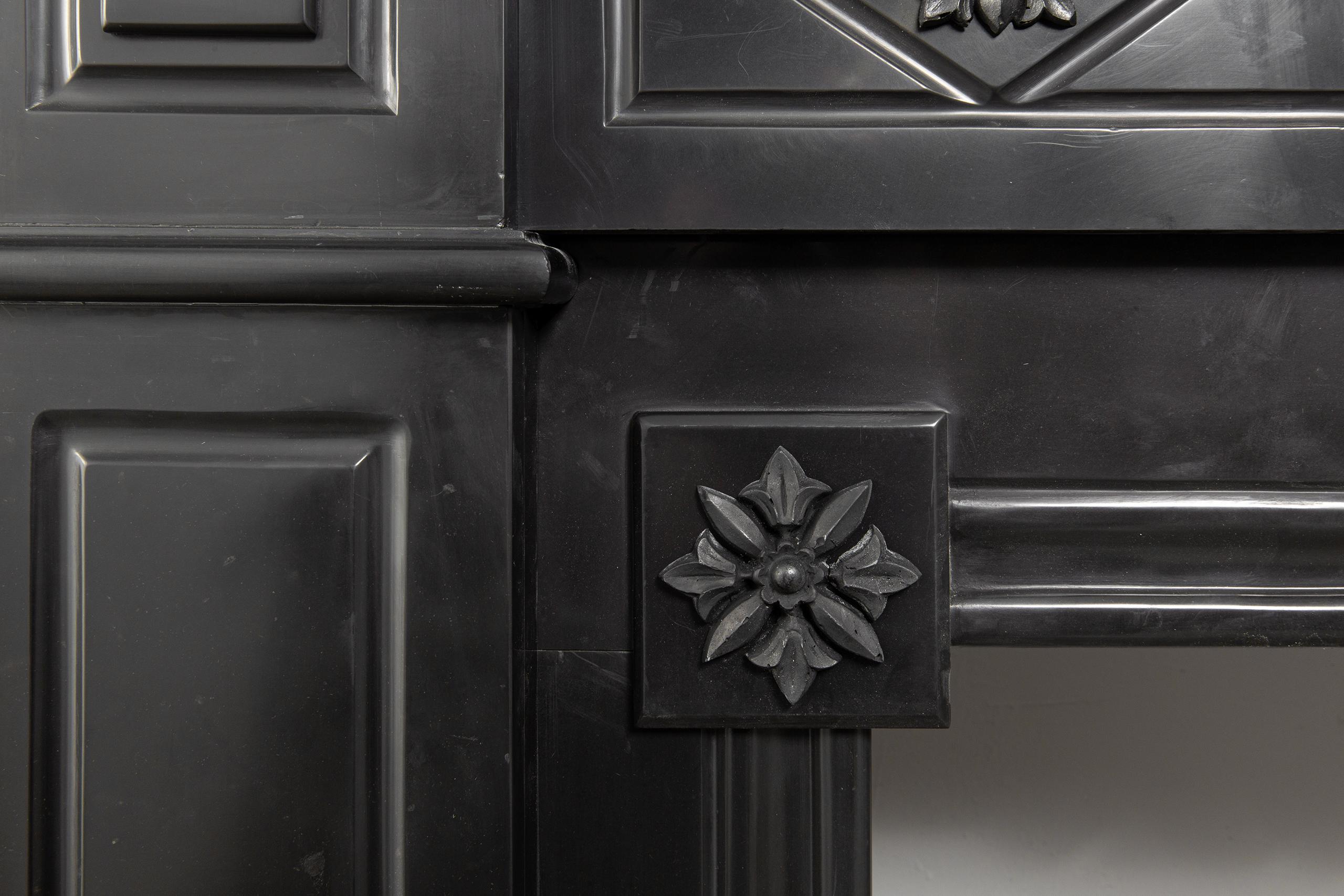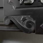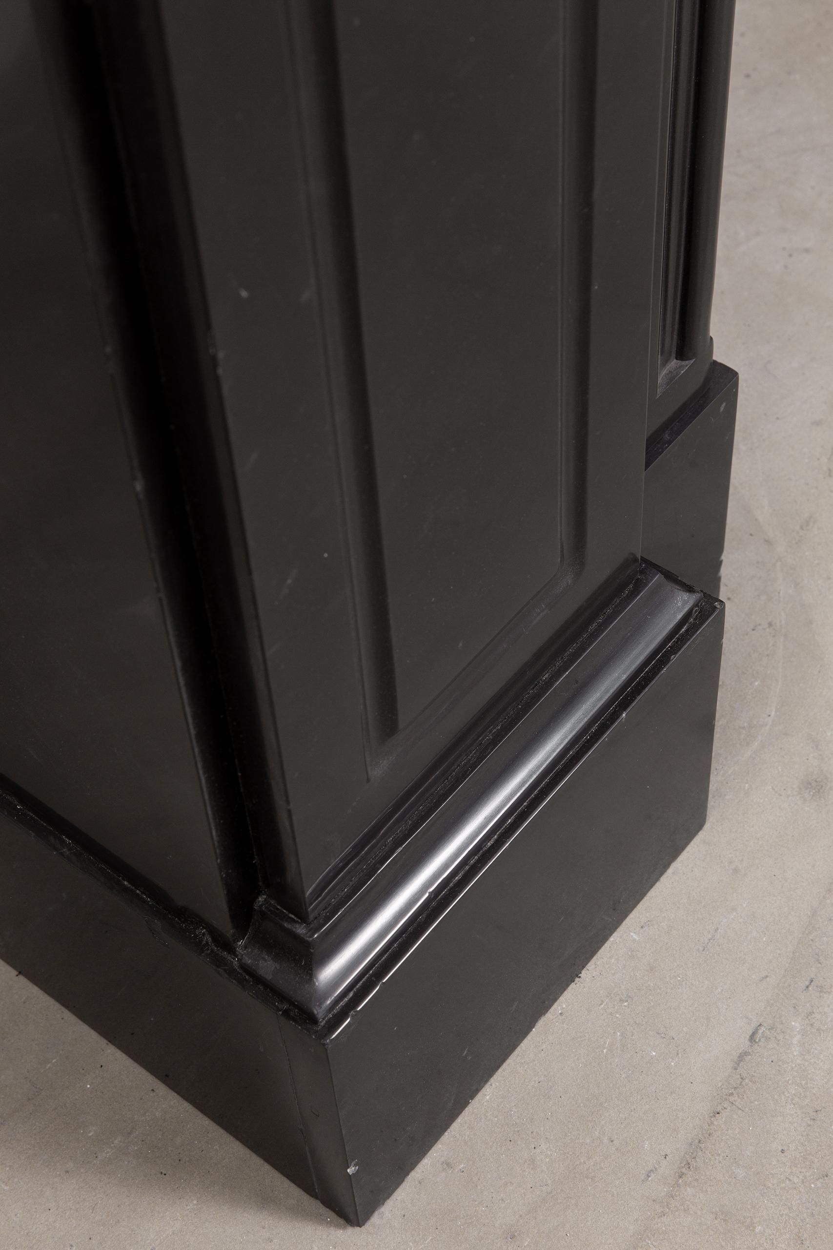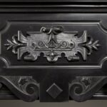 A Unique antique black marble fireplace. The fireplace is in beautiful condition. Richly decorated with iron attachments, these ornaments give the fireplace a powerful appearance. The detailing and quality of the fireplace are really beautiful. This fireplace comes from a large canal house in the Netherlands, where they decorated the front and backrooms.
