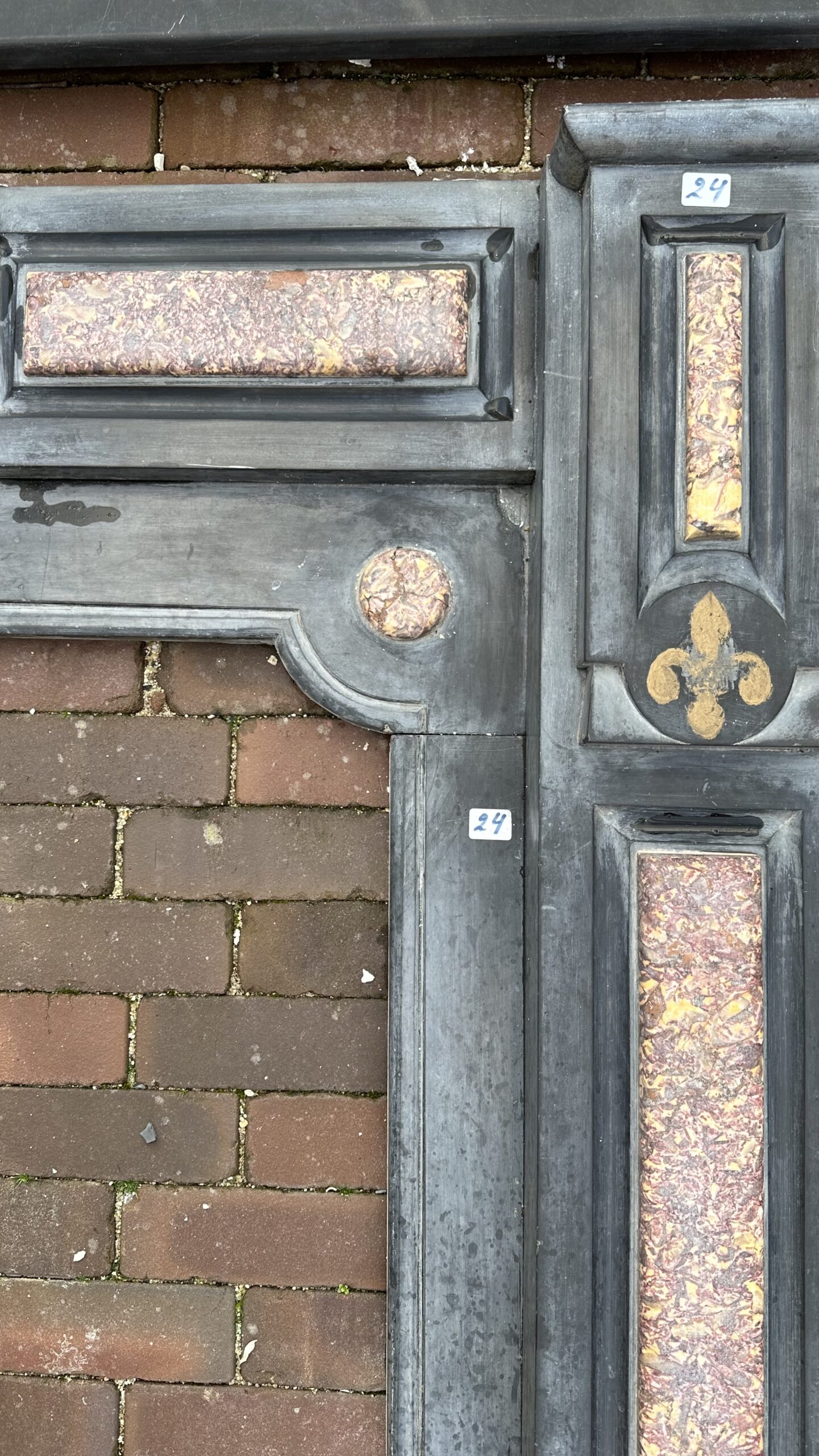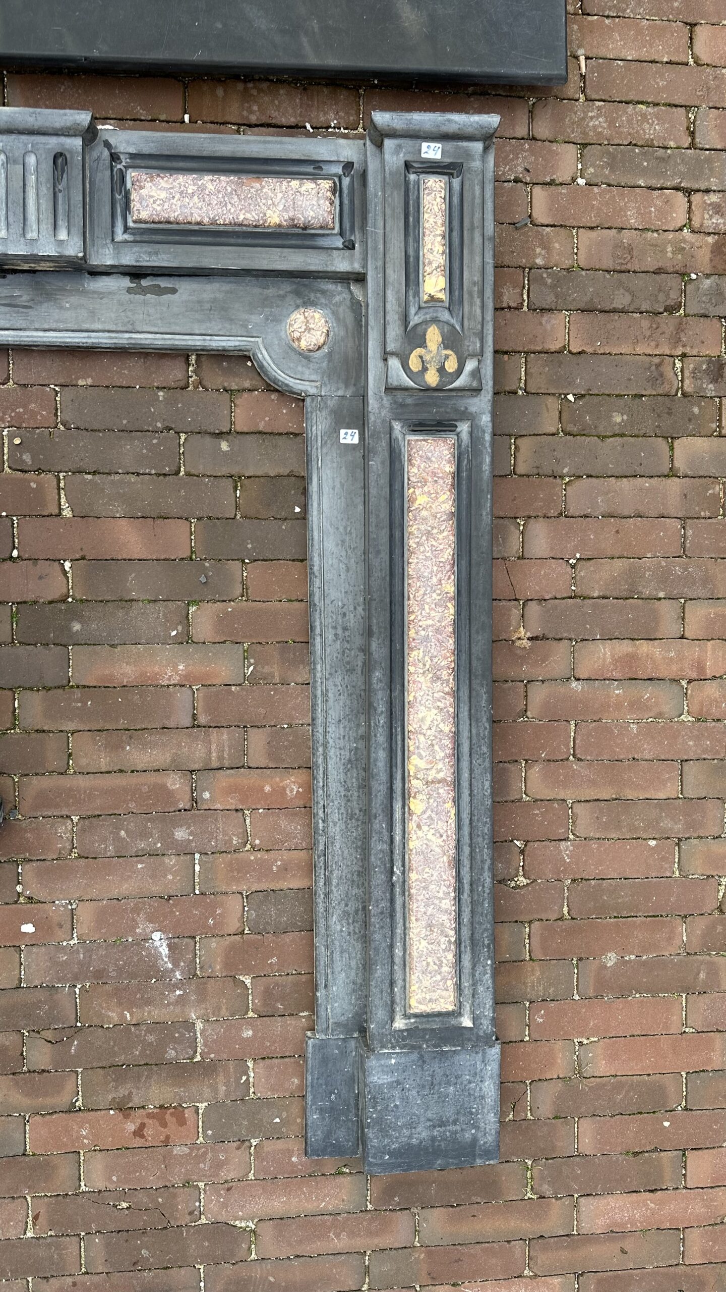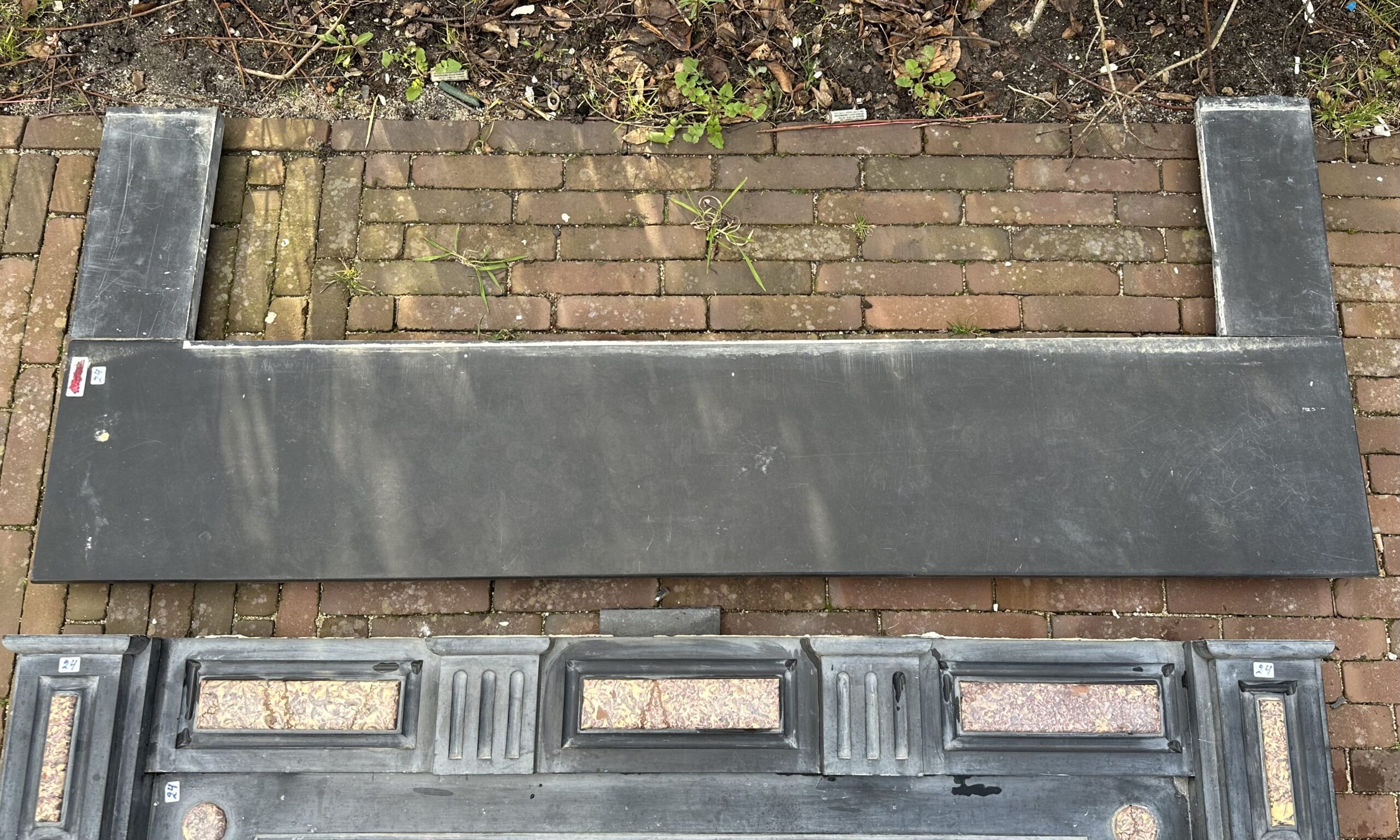 Een ongerestaureerde zwarte omloopschouw. Deze schouw is nog niet in elkaar gezet en wordt verkocht zoals afgebeeld.