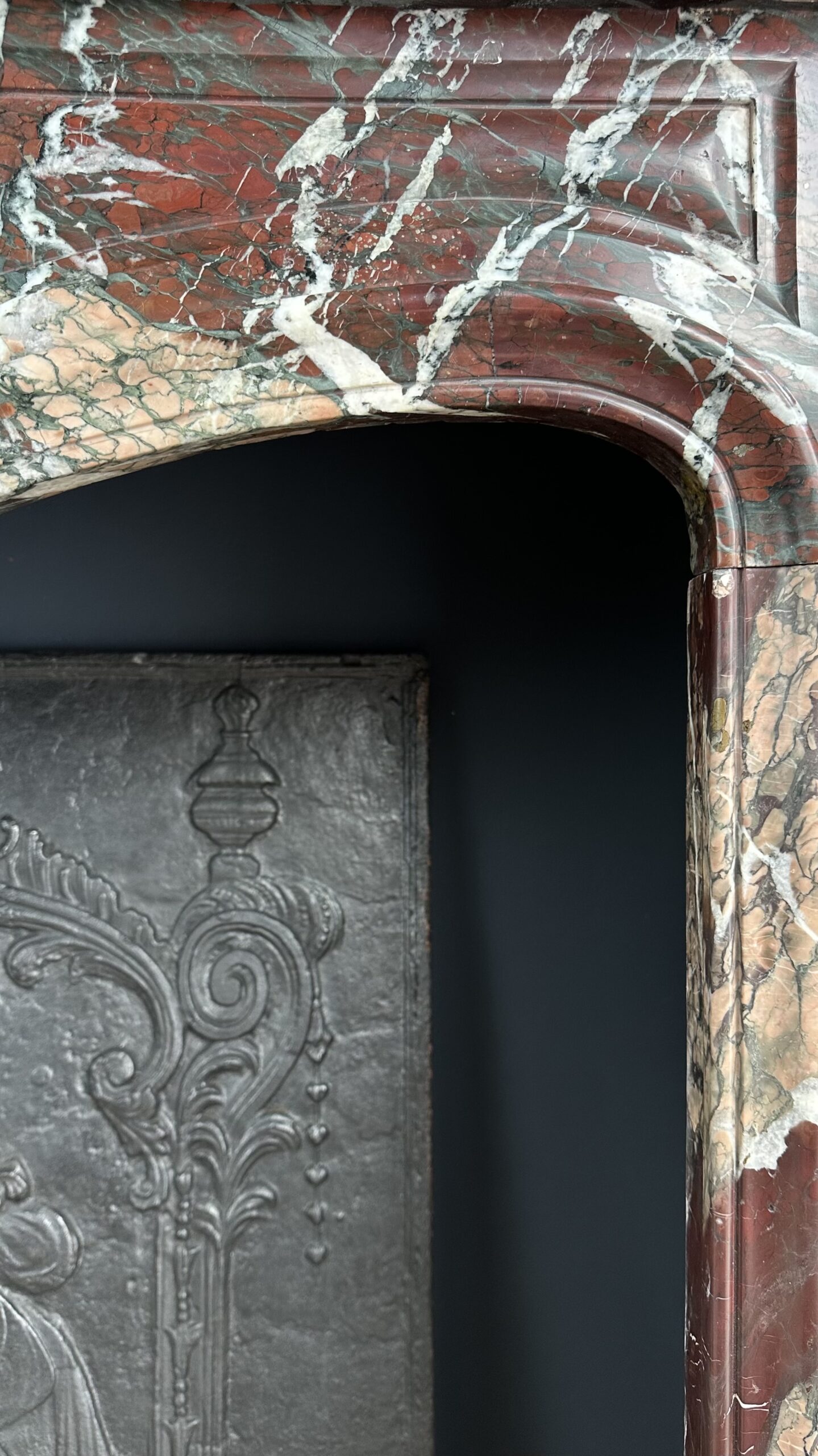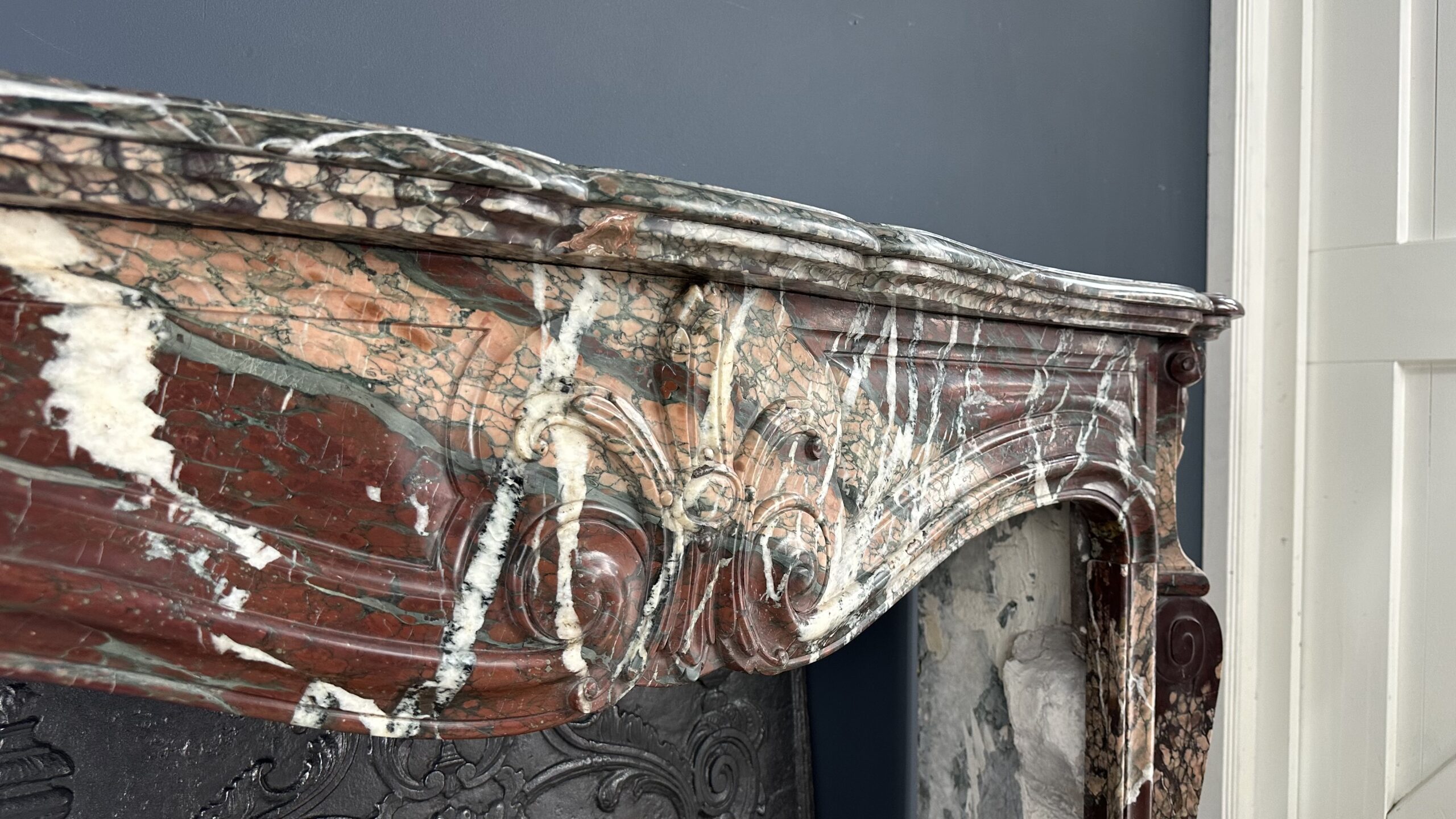 Ontdek de tijdloze schoonheid van onze exclusieve antieke marmeren openhaard, vervaardigd uit het zeldzame Campan Rubané marmer dat te vinden is in de koninklijke kamers van het Paleis van Versailles. Deze openhaard is een meesterwerk van elegantie en vakmanschap, en hier is waarom: