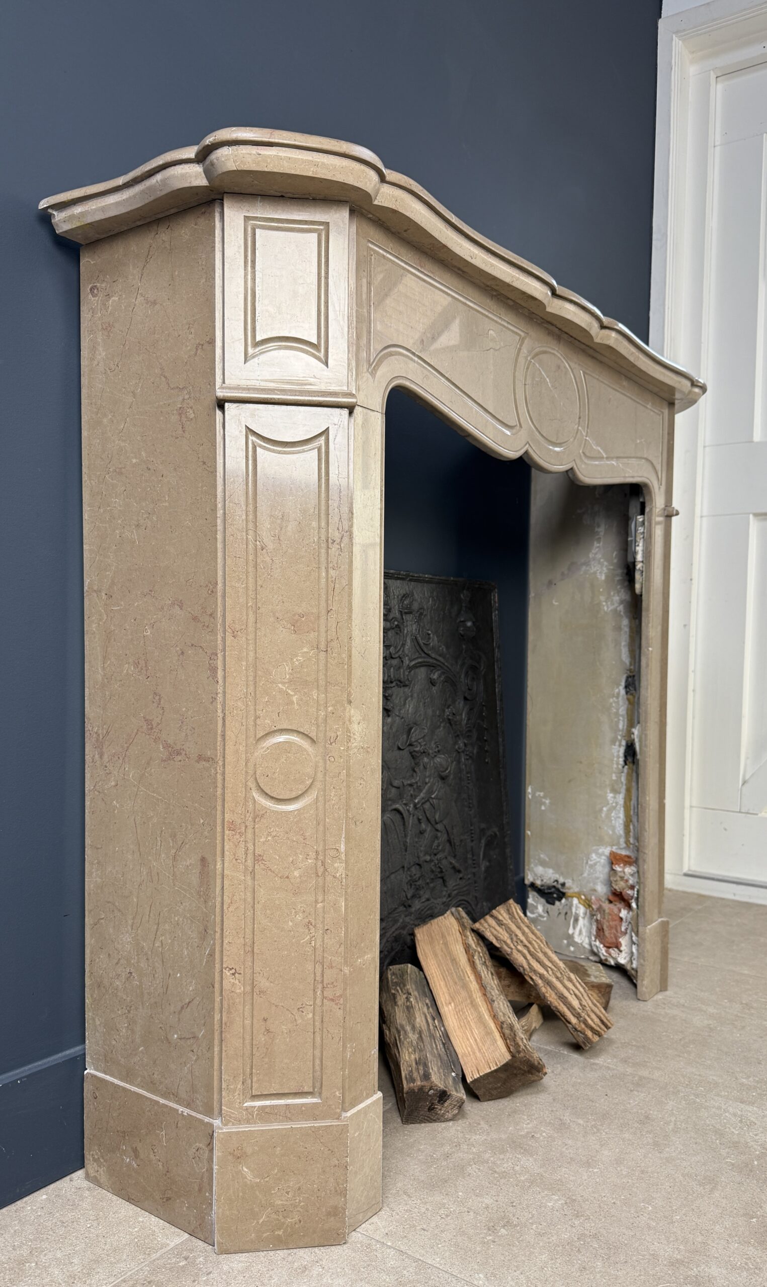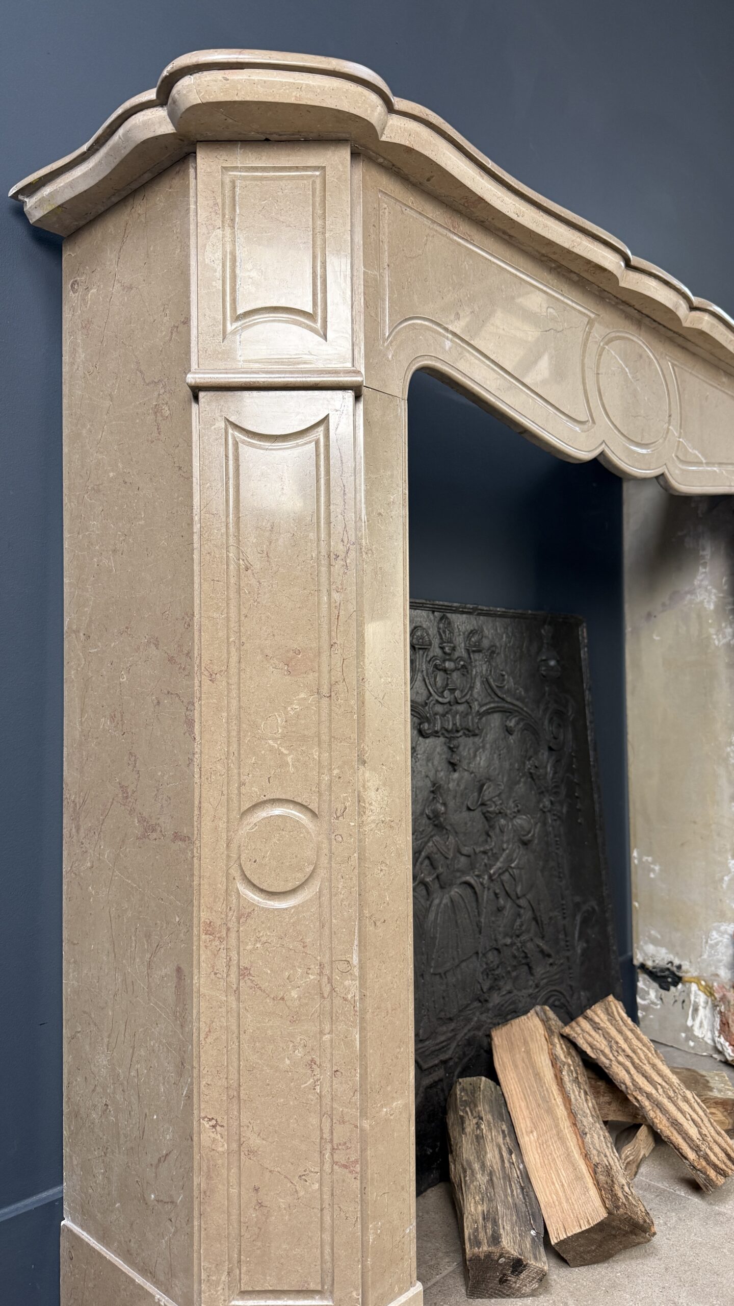Antieke Schouw uitgevoerd in warm leverkleurig marmer met subtiele rode adering. Het natuurlijke kleurenpalet zorgt voor een verfijnde, authentieke uitstraling die moeiteloos past binnen zowel klassieke als moderne settings.