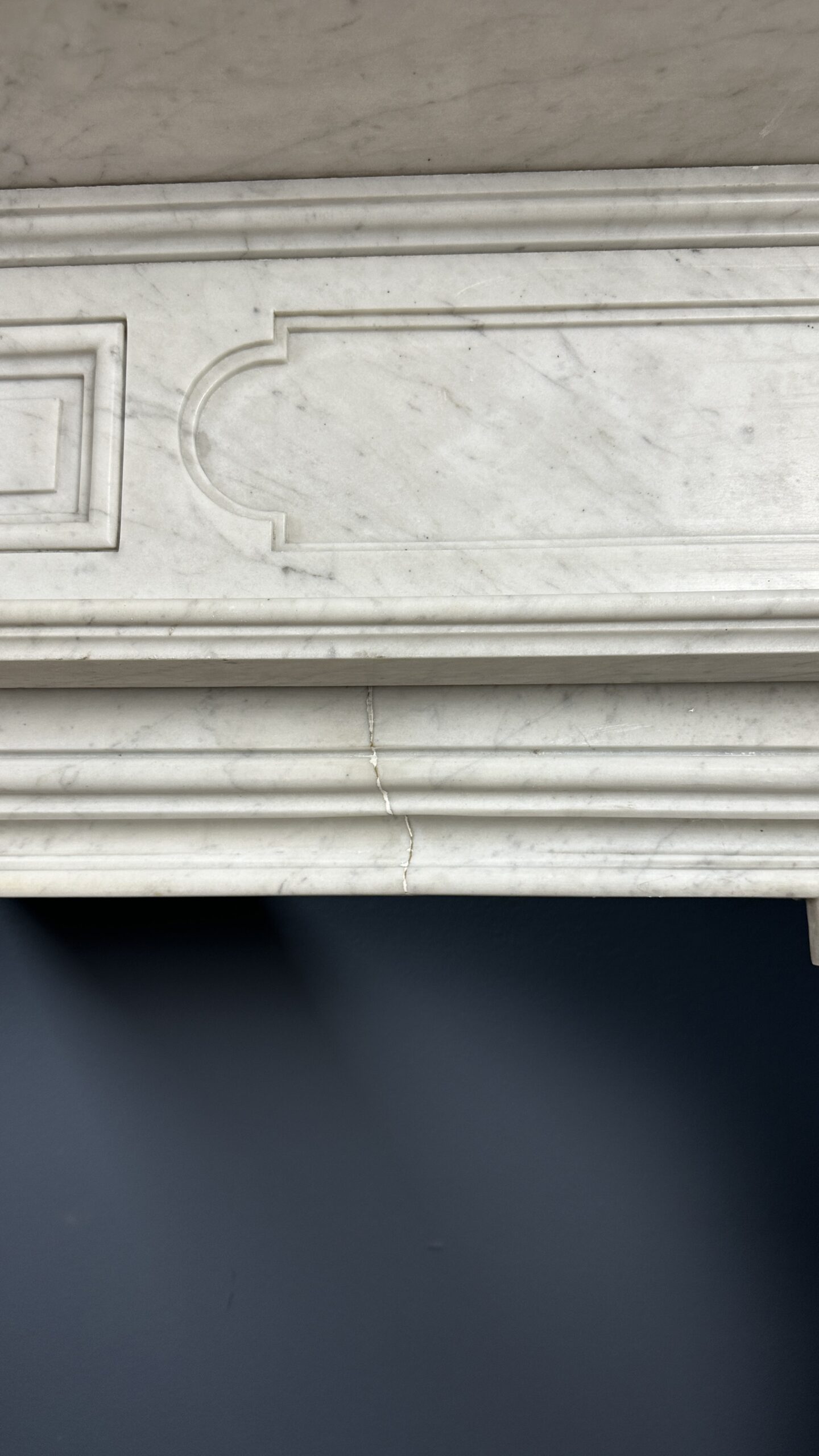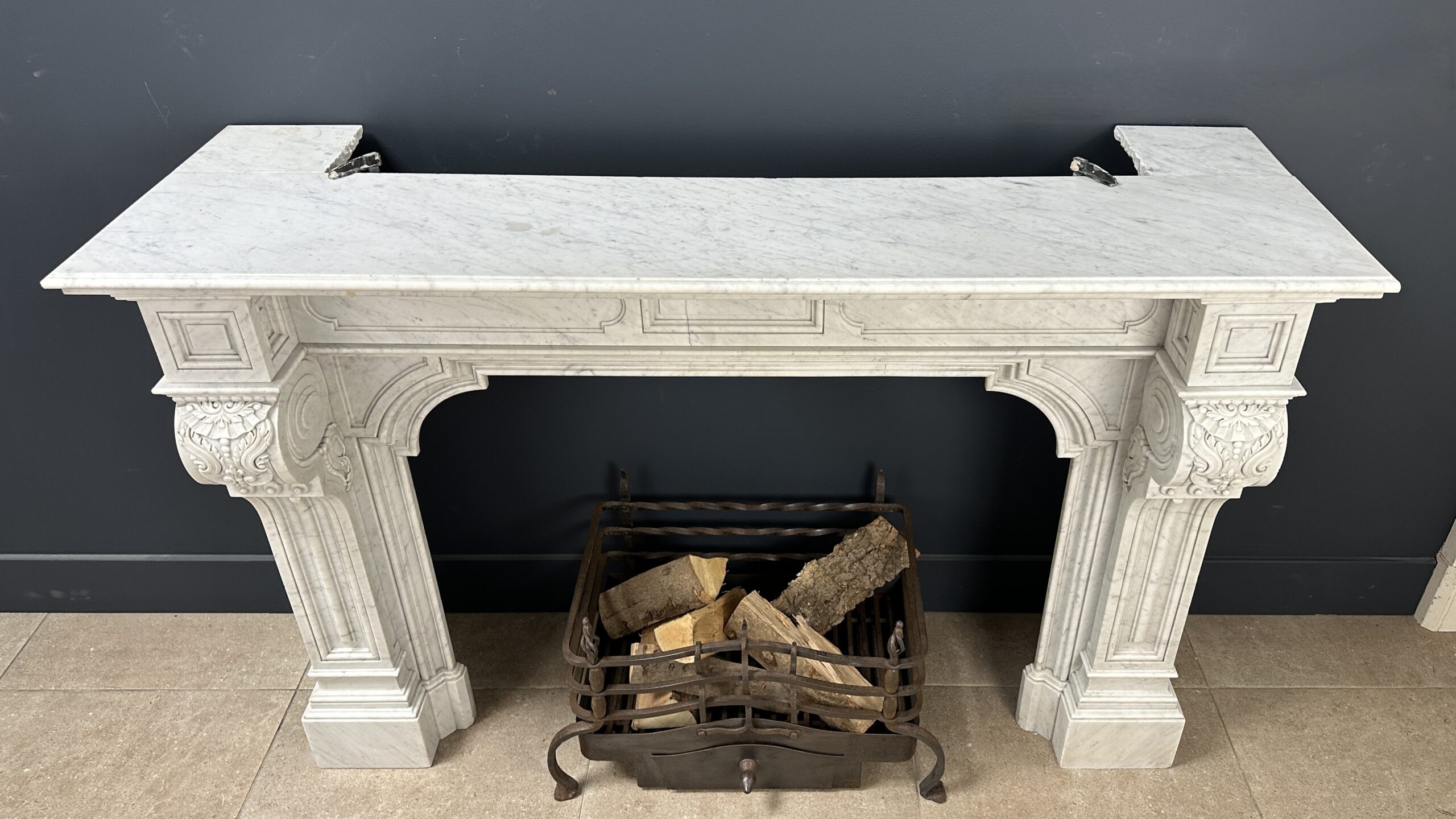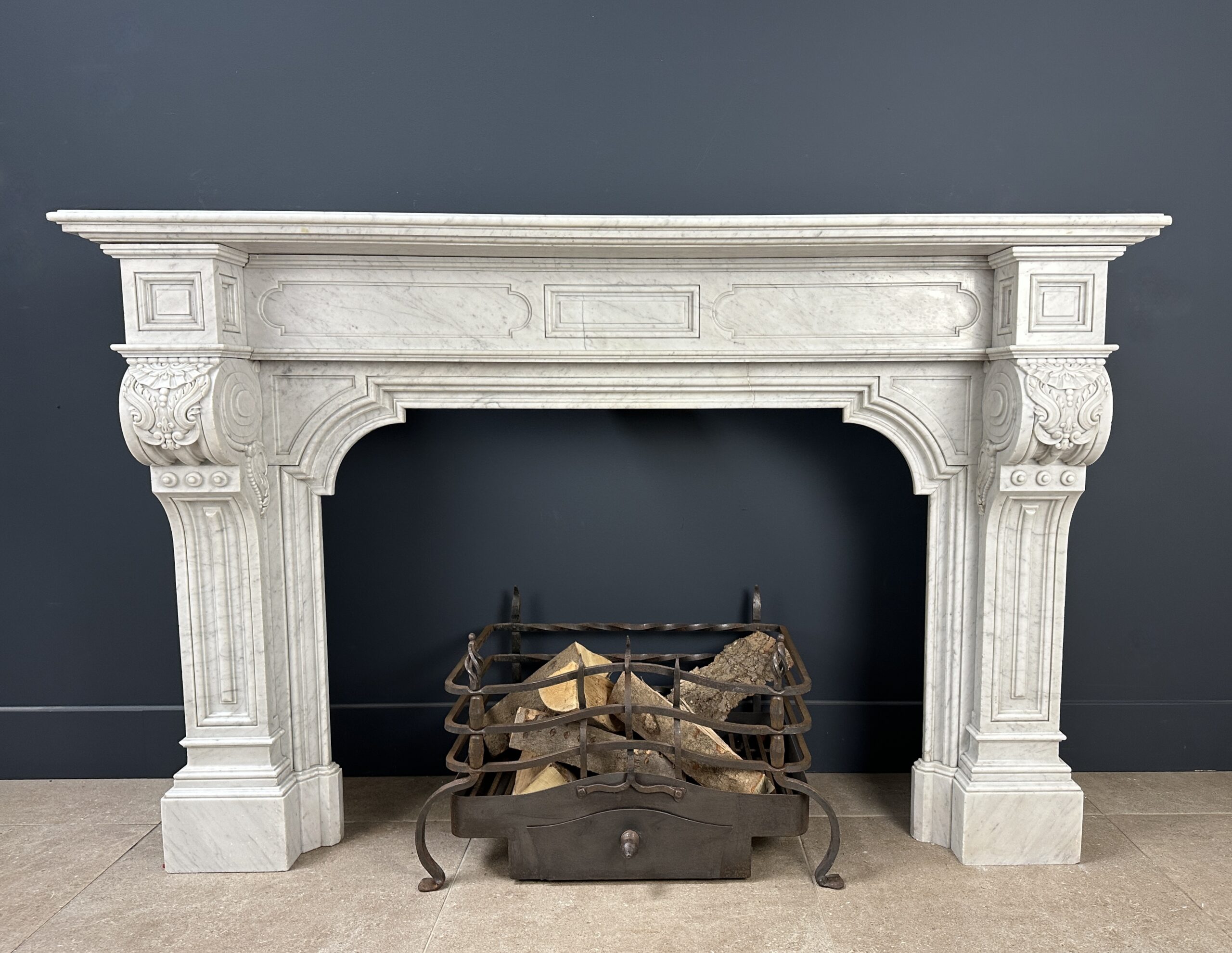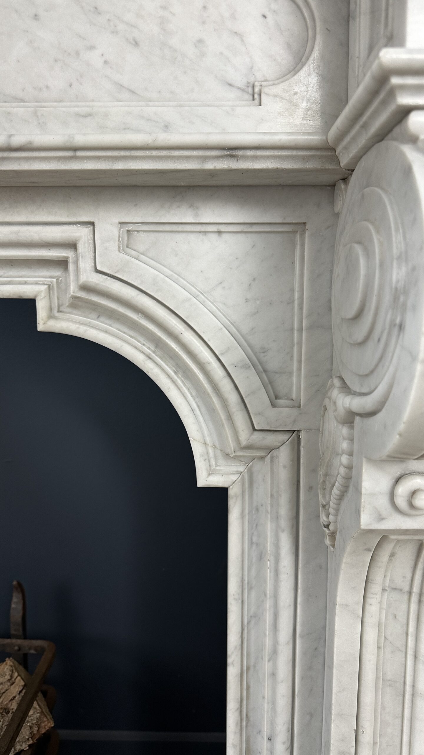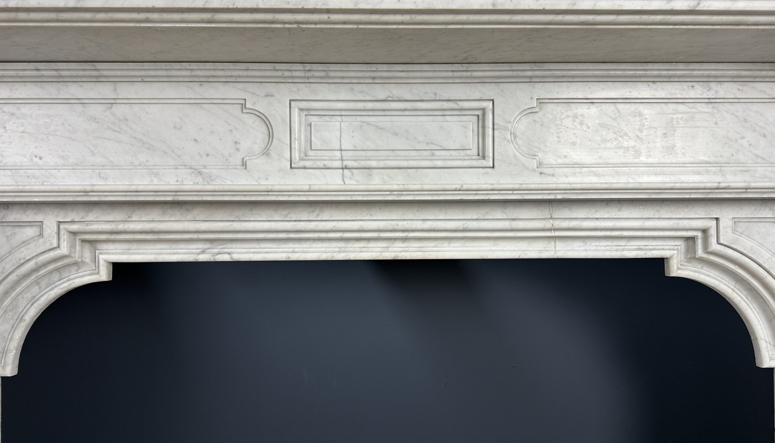 Betreed de weelderige wereld van antieke grandeur met deze betoverende omloopschouw in de verfijnde Louis XVI-stijl. Gesneden uit het kostbare Carrara-marmer, straalt dit pronkstuk een tijdloze elegantie uit die de ruimte transformeert tot een oase van luxe. Afkomstig uit een statig pand in het hart van Brussel, draagt deze schouw trots zijn Belgische erfgoed met zich mee, verrijkt door eeuwen van vakmanschap en verfijning.