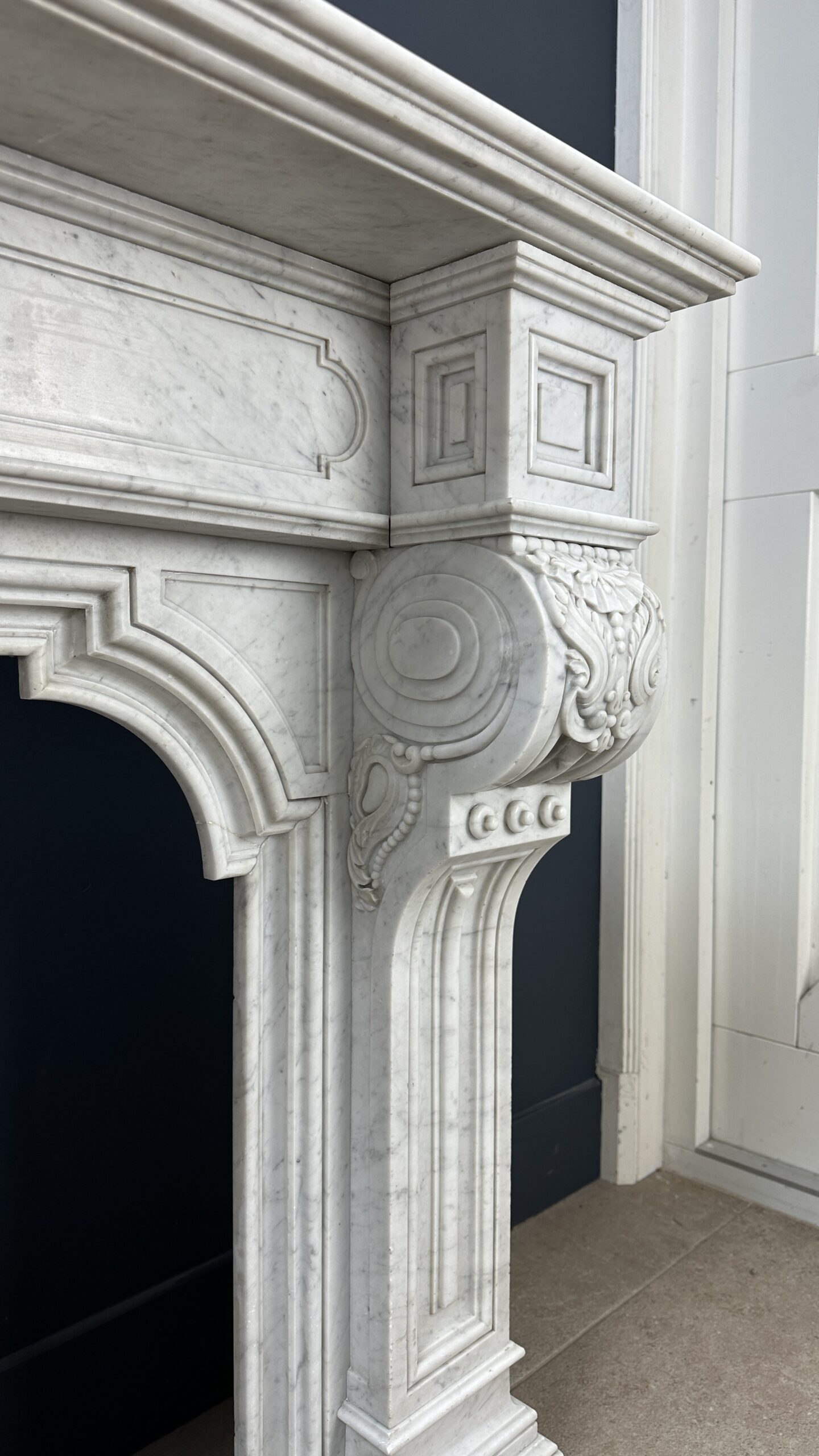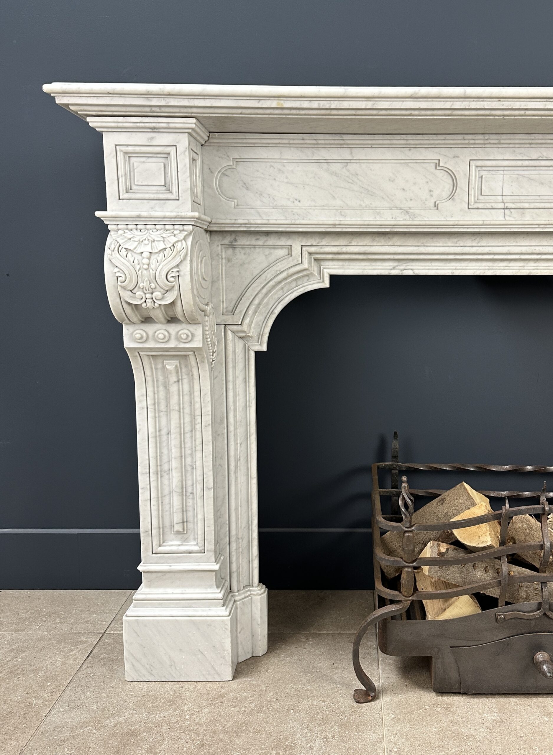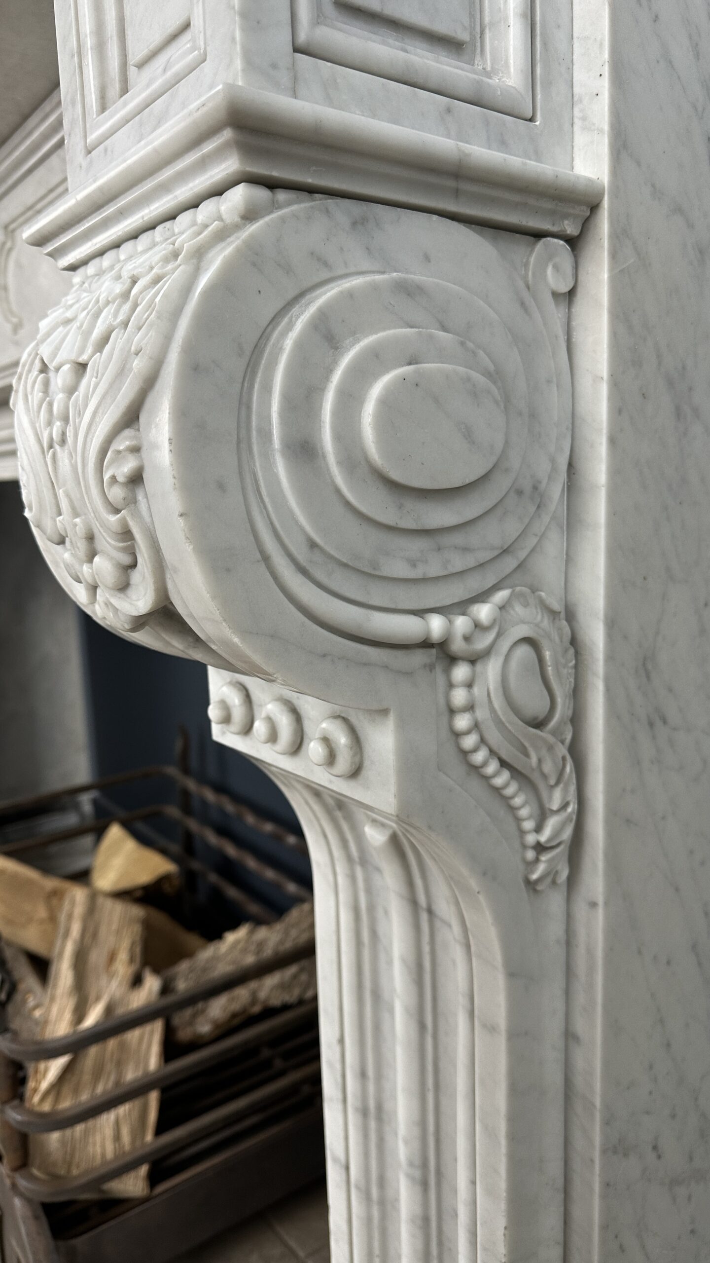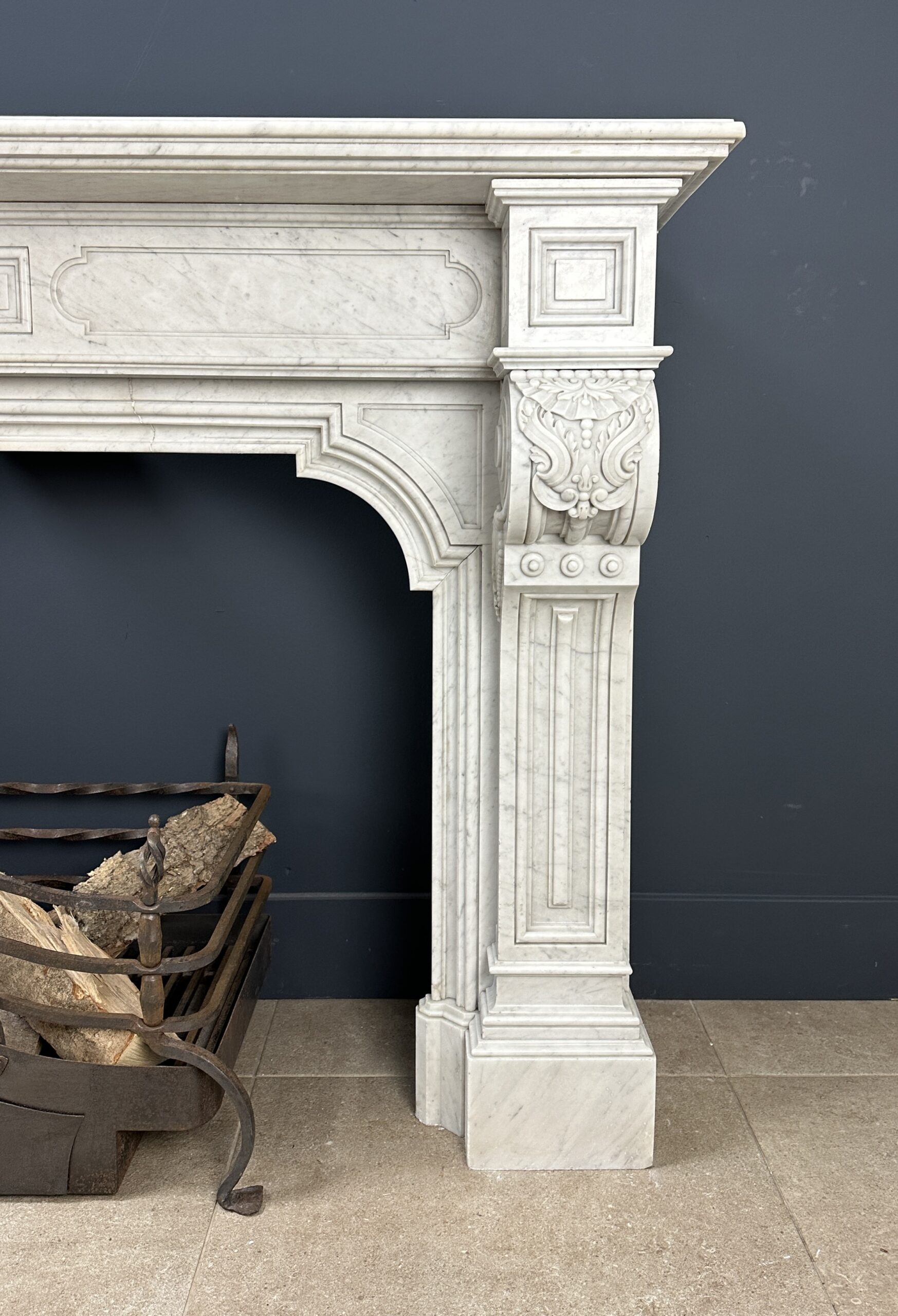 Betreed de weelderige wereld van antieke grandeur met deze betoverende omloopschouw in de verfijnde Louis XVI-stijl. Gesneden uit het kostbare Carrara-marmer, straalt dit pronkstuk een tijdloze elegantie uit die de ruimte transformeert tot een oase van luxe. Afkomstig uit een statig pand in het hart van Brussel, draagt deze schouw trots zijn Belgische erfgoed met zich mee, verrijkt door eeuwen van vakmanschap en verfijning.