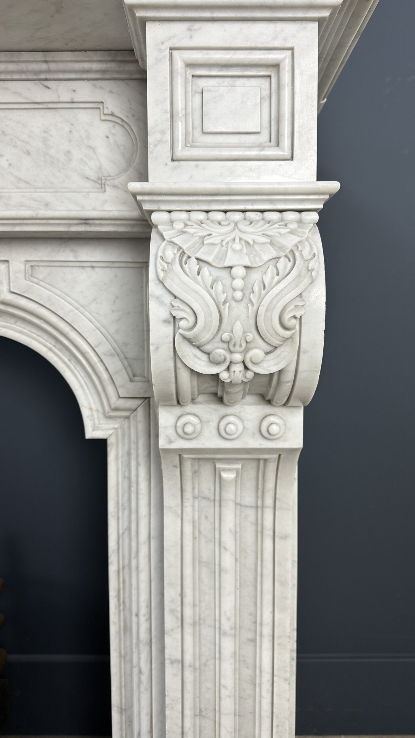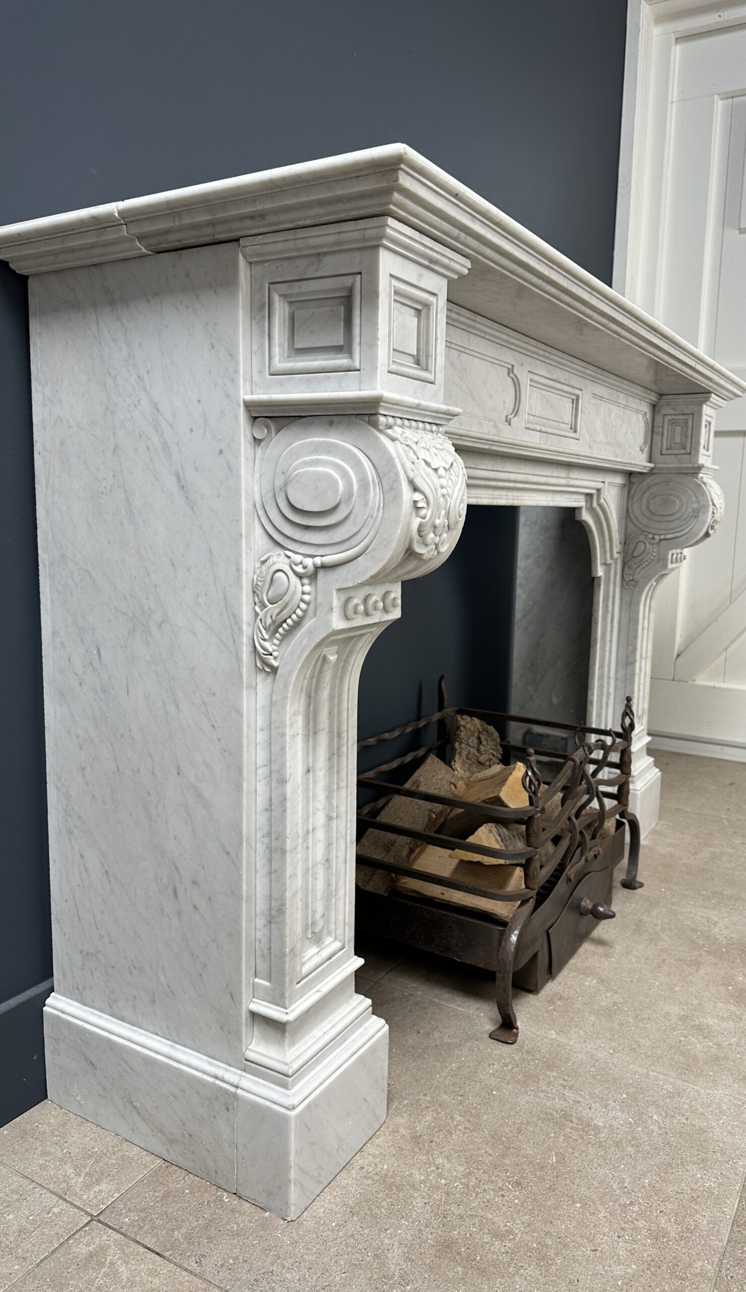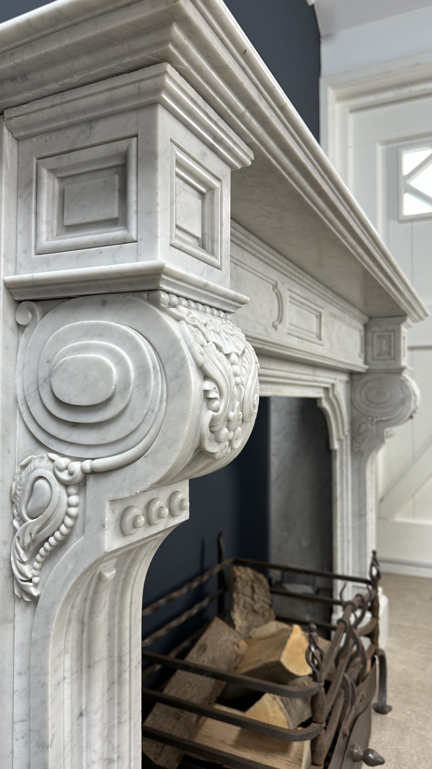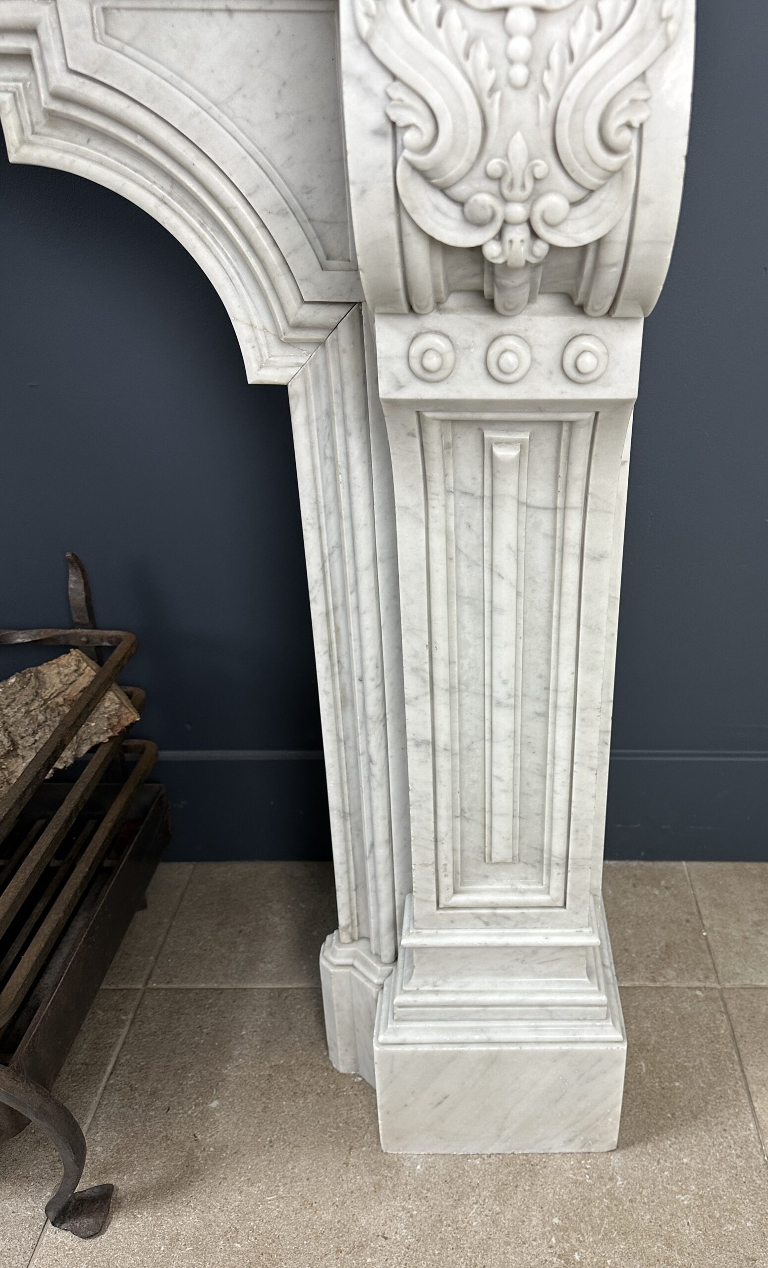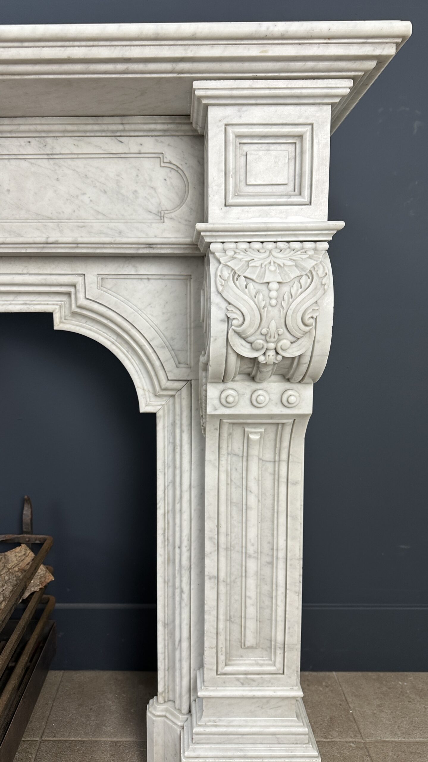 Betreed de weelderige wereld van antieke grandeur met deze betoverende omloopschouw in de verfijnde Louis XVI-stijl. Gesneden uit het kostbare Carrara-marmer, straalt dit pronkstuk een tijdloze elegantie uit die de ruimte transformeert tot een oase van luxe. Afkomstig uit een statig pand in het hart van Brussel, draagt deze schouw trots zijn Belgische erfgoed met zich mee, verrijkt door eeuwen van vakmanschap en verfijning.