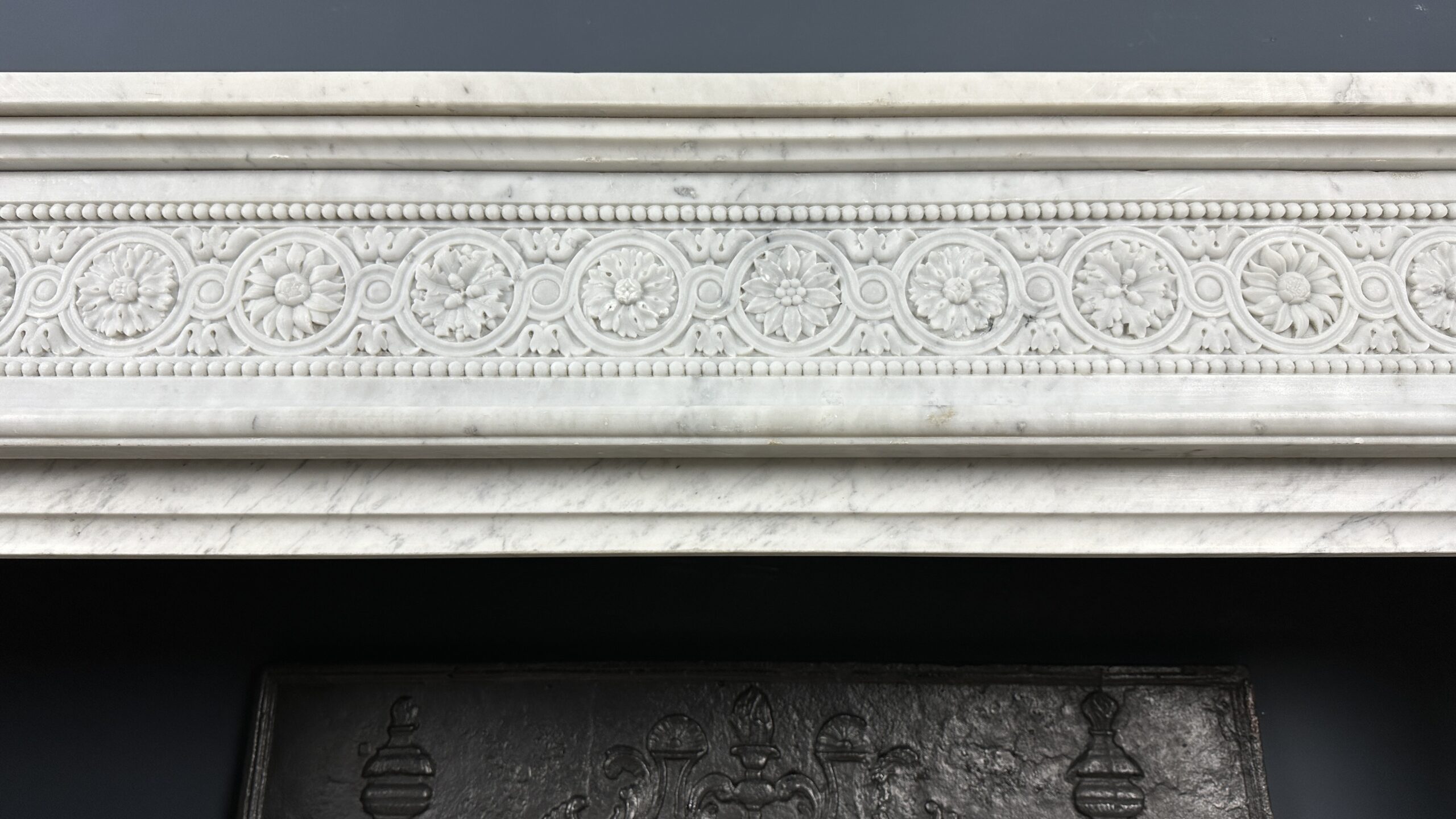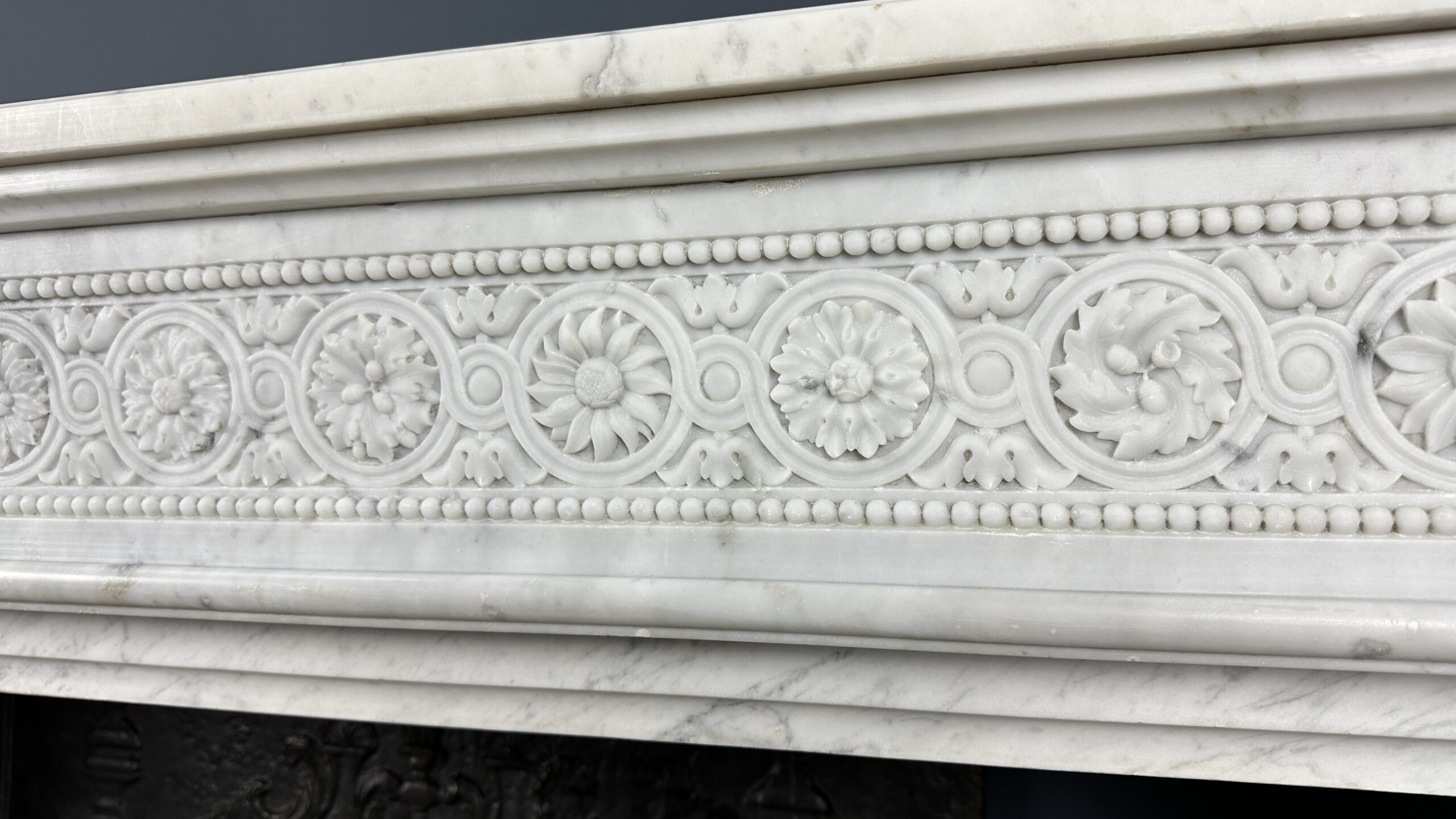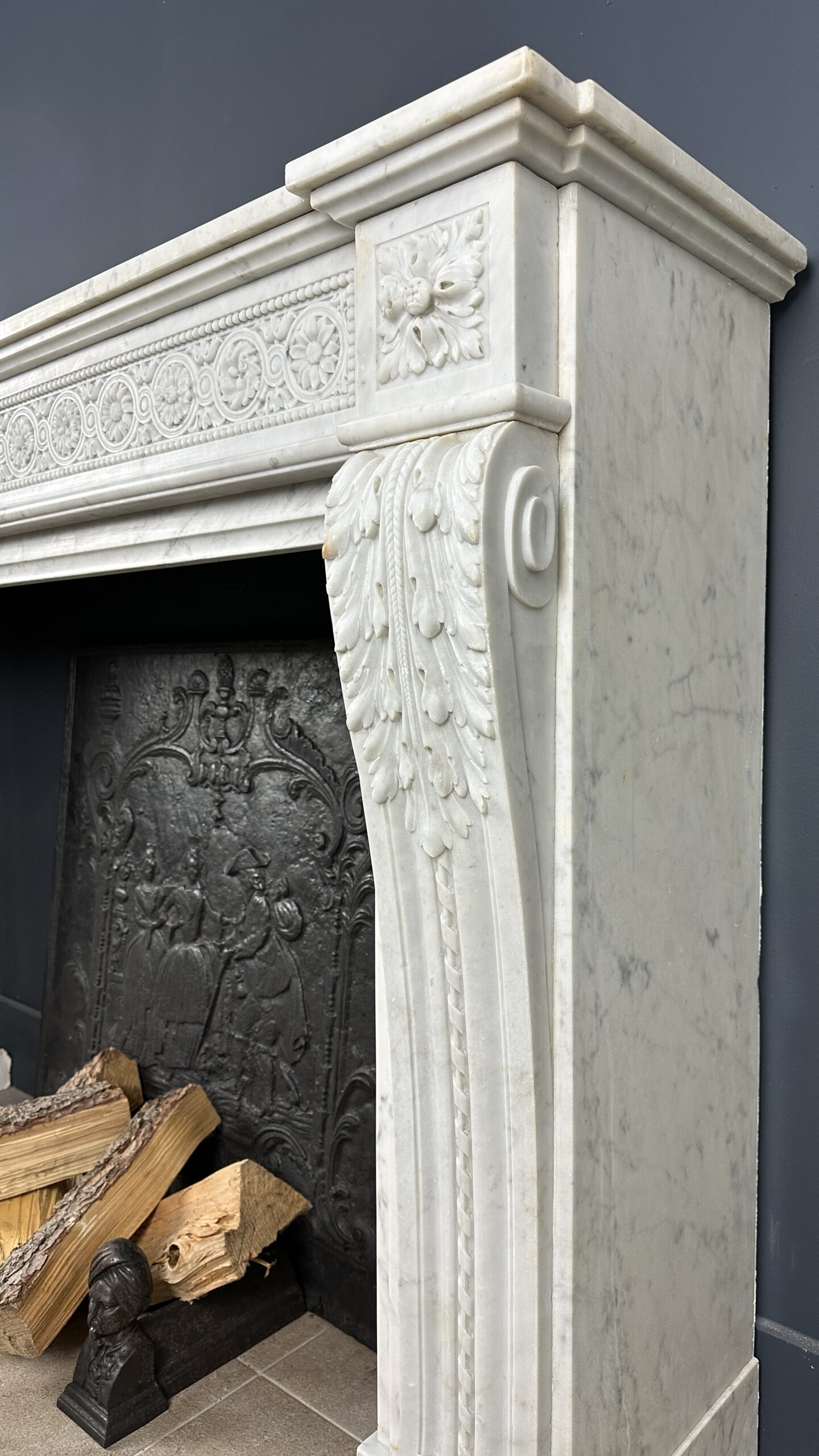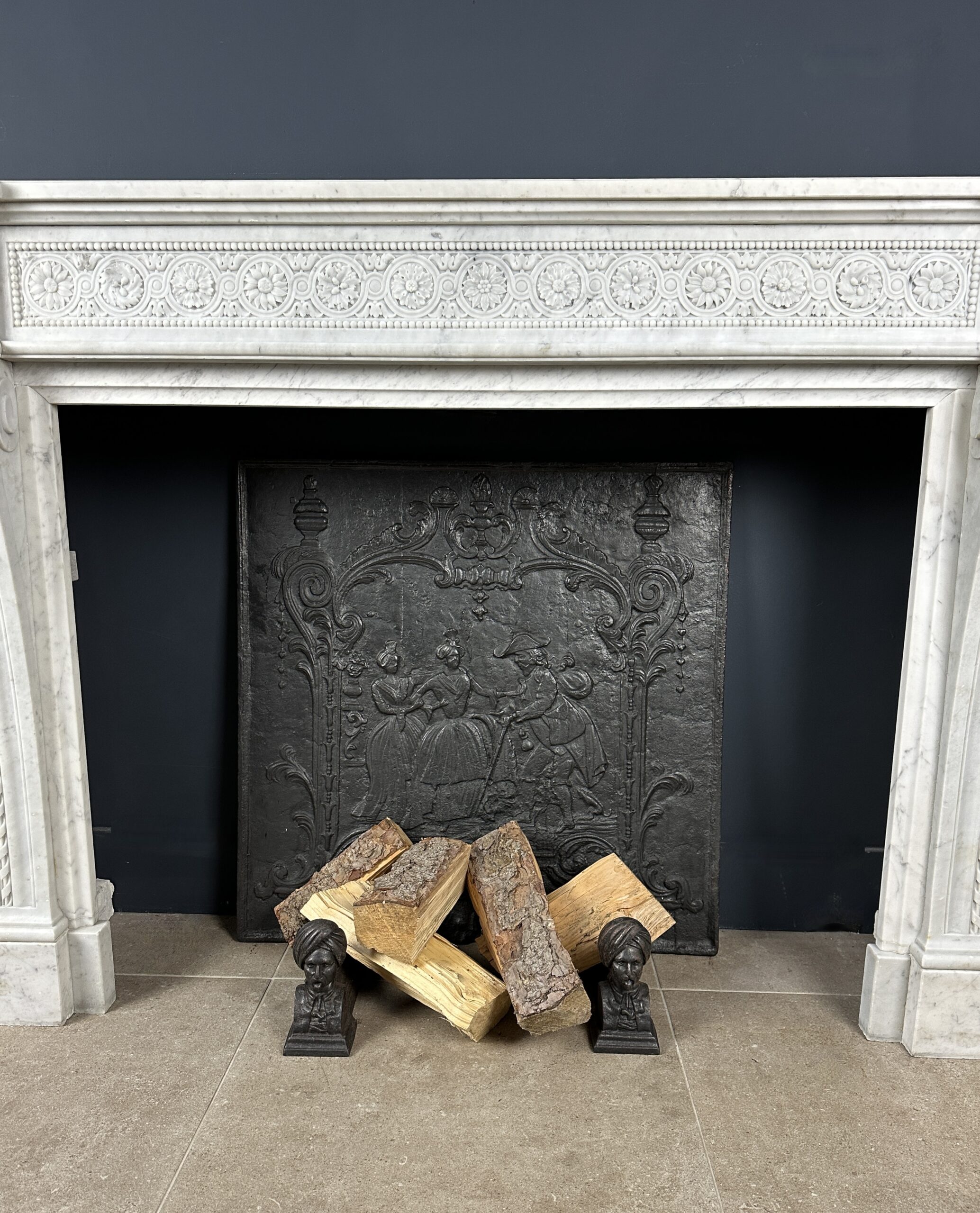 Tijdloze elegantie straalt deze Prachtige Franse Antieke Louis XV Front Schouw in Carrara Marmer uit. Het minutieus geprofileerde front van deze schouw is een meesterwerk op zich, met verfijnde details die de stijlvolle uitstraling benadrukken.