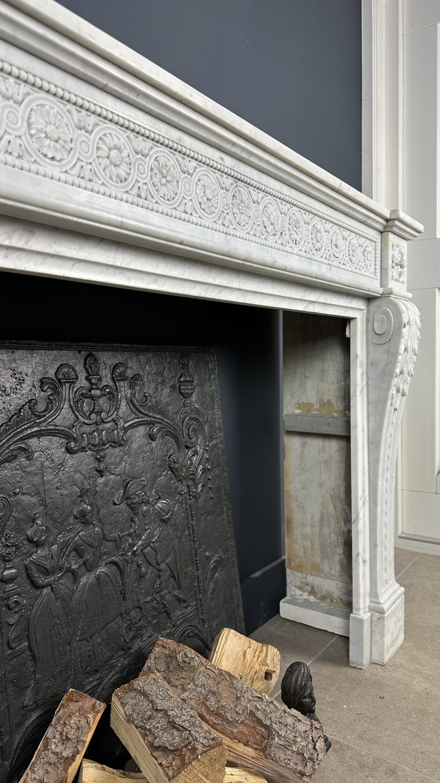 Het Carrara marmer geeft een vleugje luxe, terwijl de fijne details op de benen de authenticiteit van het Louis XV design benadrukken. Ontworpen met oog voor detail, beschikt deze schouw over een dubbel bovenblad dat naadloos de gracieuze lijnen van de schouw volgt, waardoor een harmonieus geheel ontstaat.