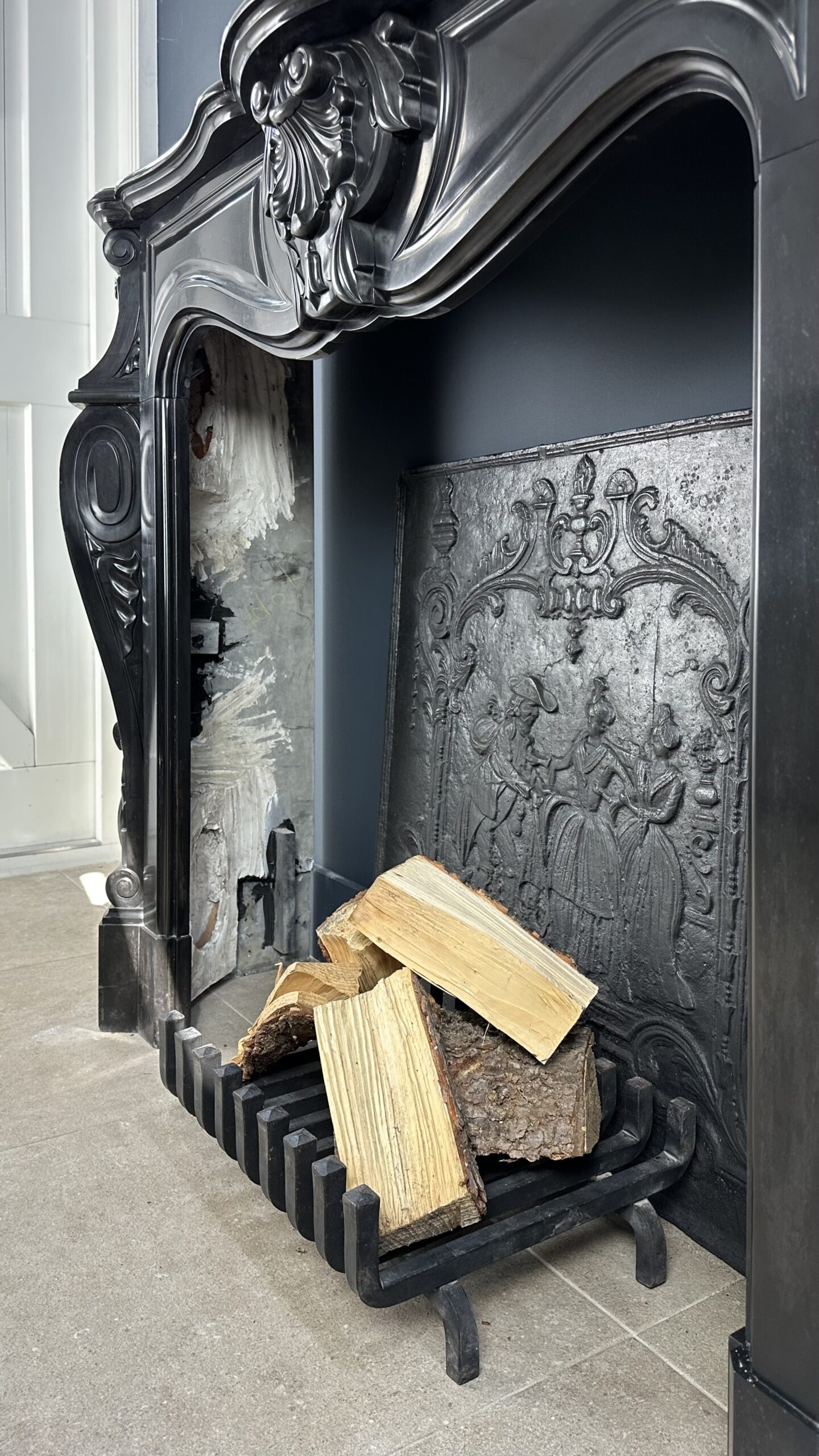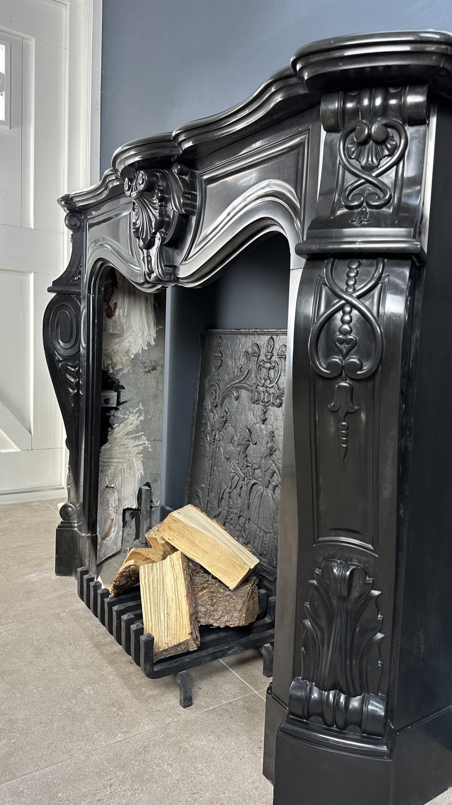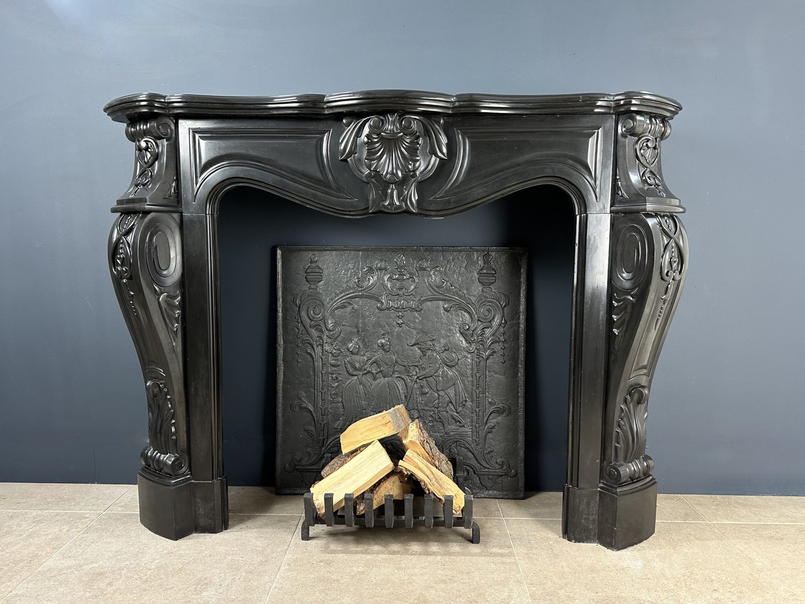 Verheven Elegantie: Louis XV Stijl Noir de Mazy Antieke Marmeren Frontschouw